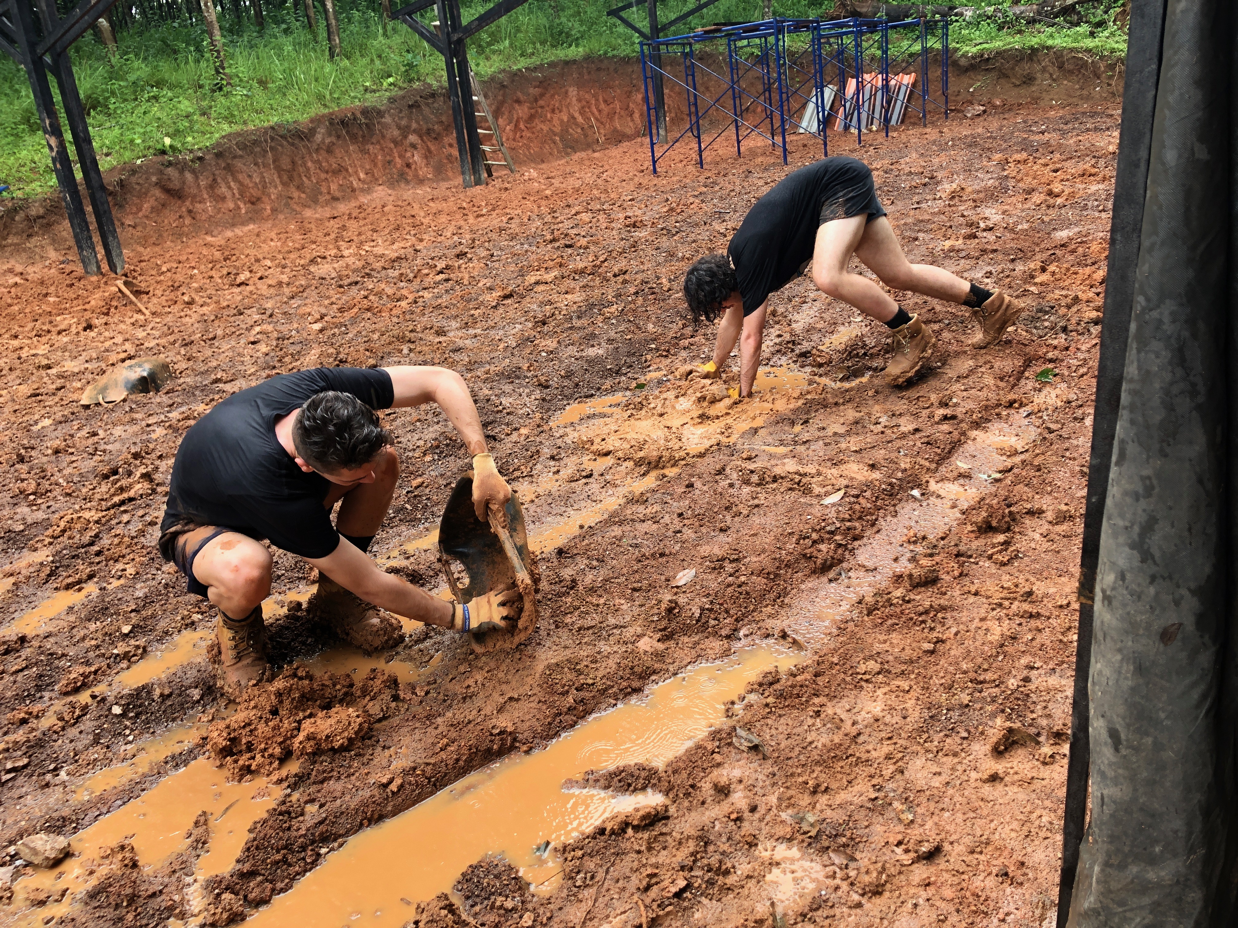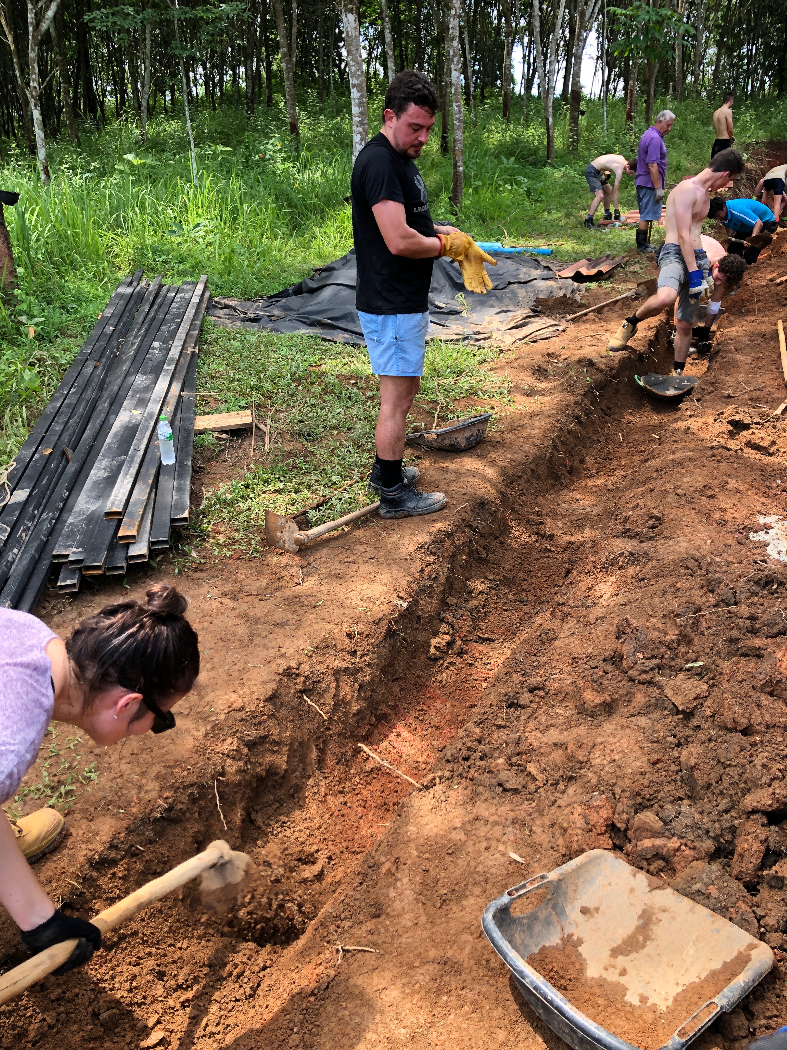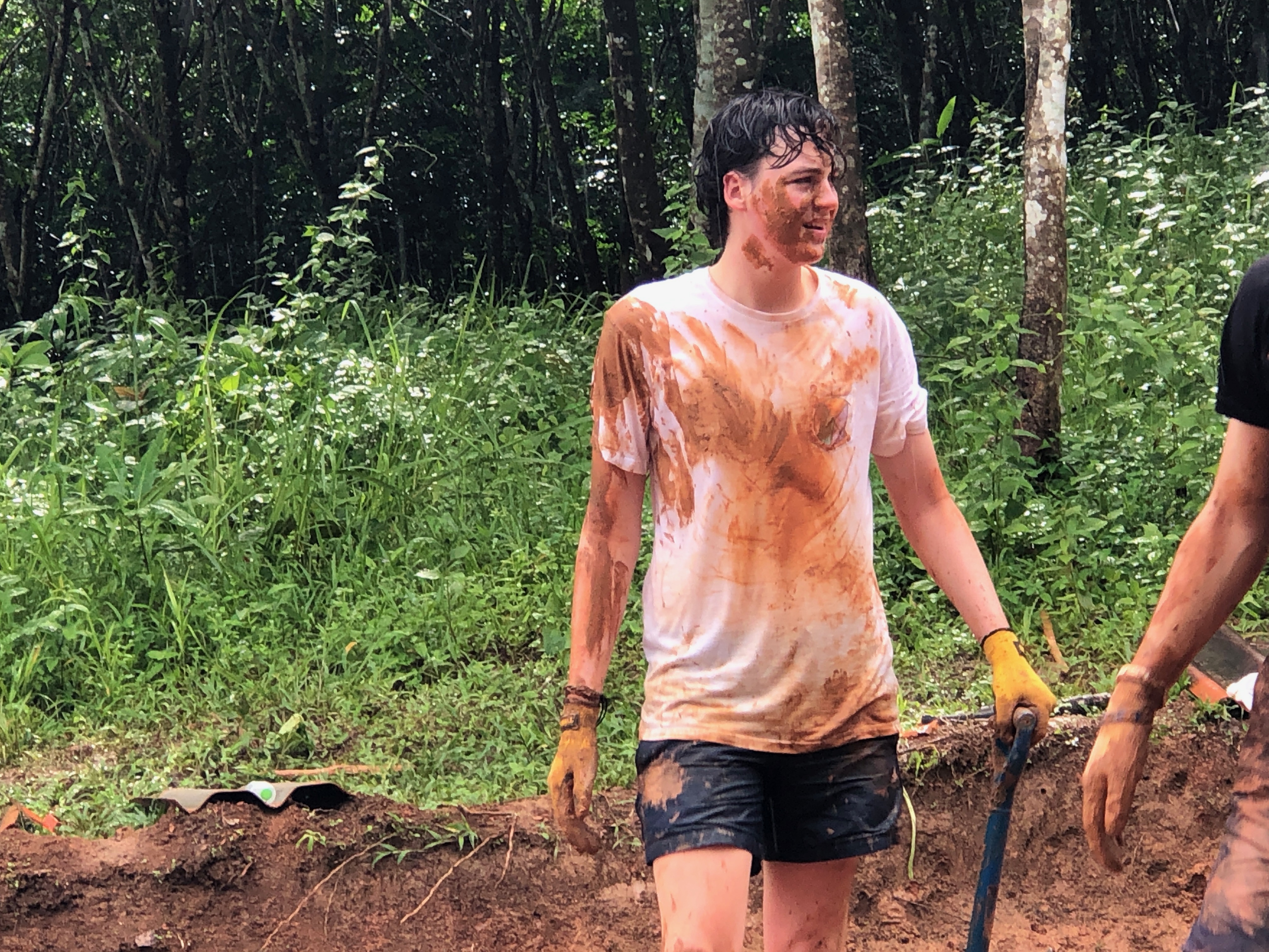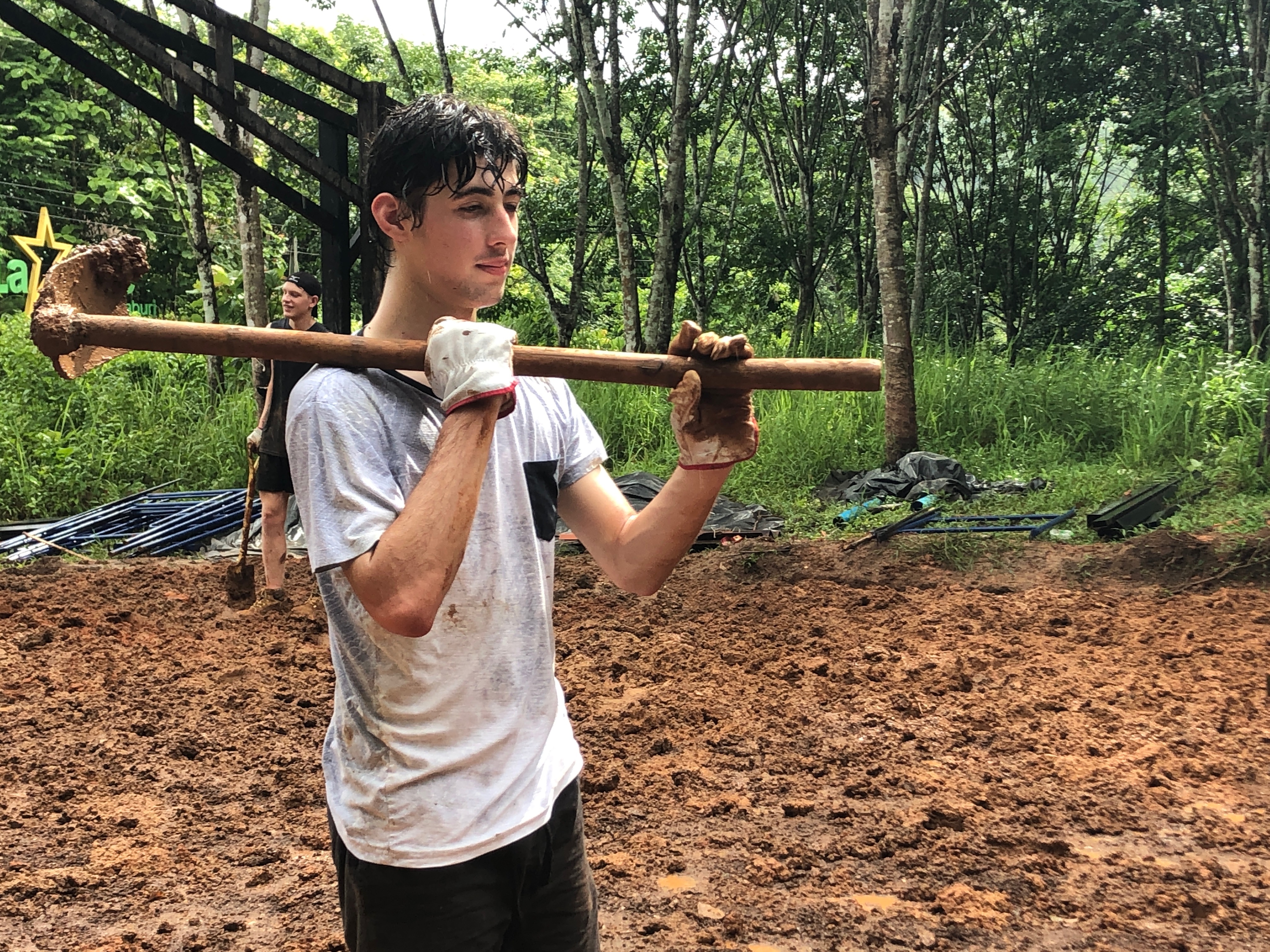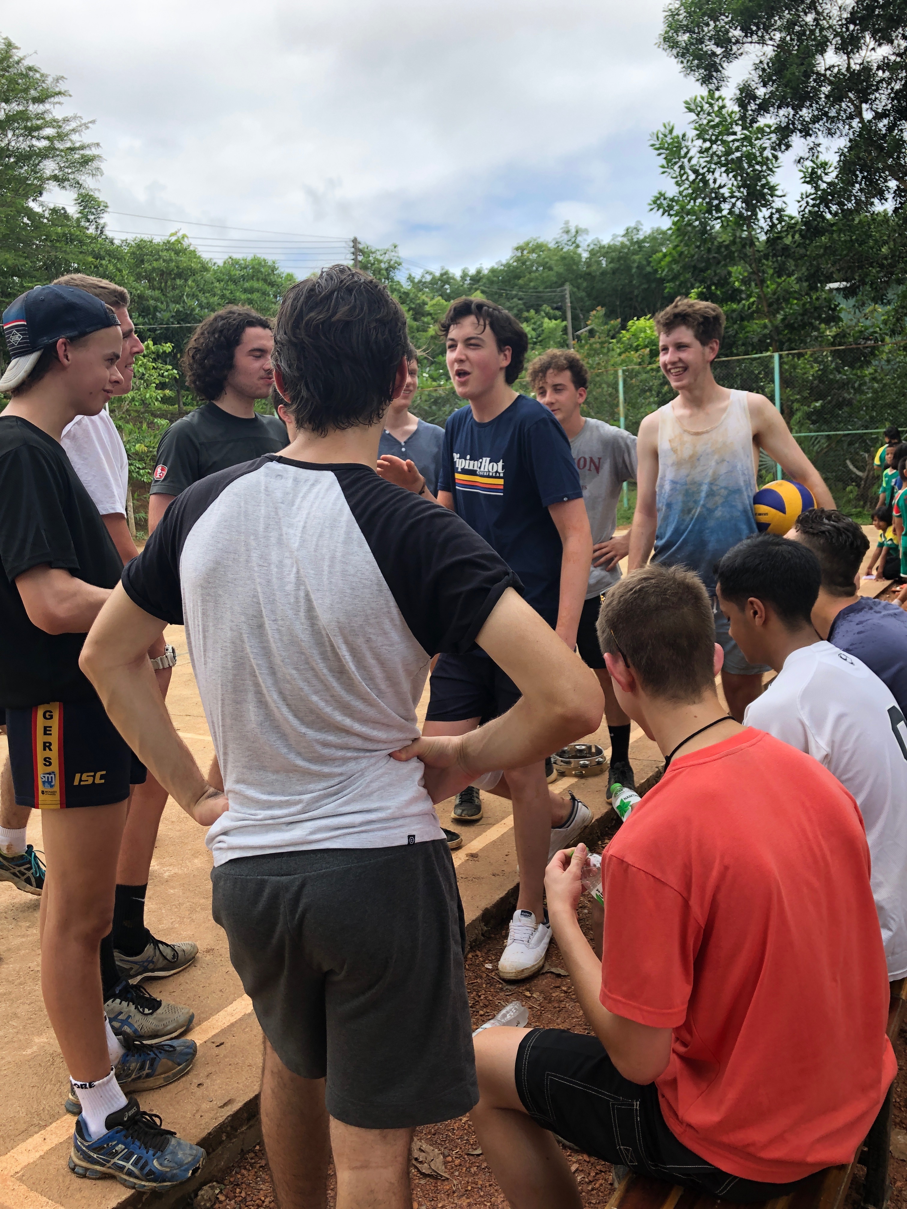 After breakfast, due to the overnight rain, we put a hold on the carpark work and instead began to form a “human centipede” as Billy’s analogy describes, as we transported two truck loads of gravel down a steep flight of stairs to a tiered surface that was prone to flooding. With Ethan and James, the captains for the day at the head of the centipede, and Billy claiming the glory at the tail-end, the “legs”, who worked away tirelessly all morning. Just as we thought we were getting close to finishing, another truck arrived and dumped another load at our displeasure.