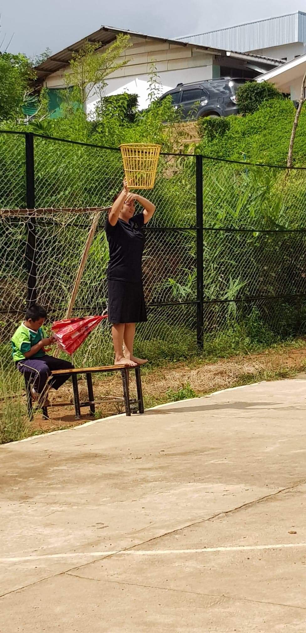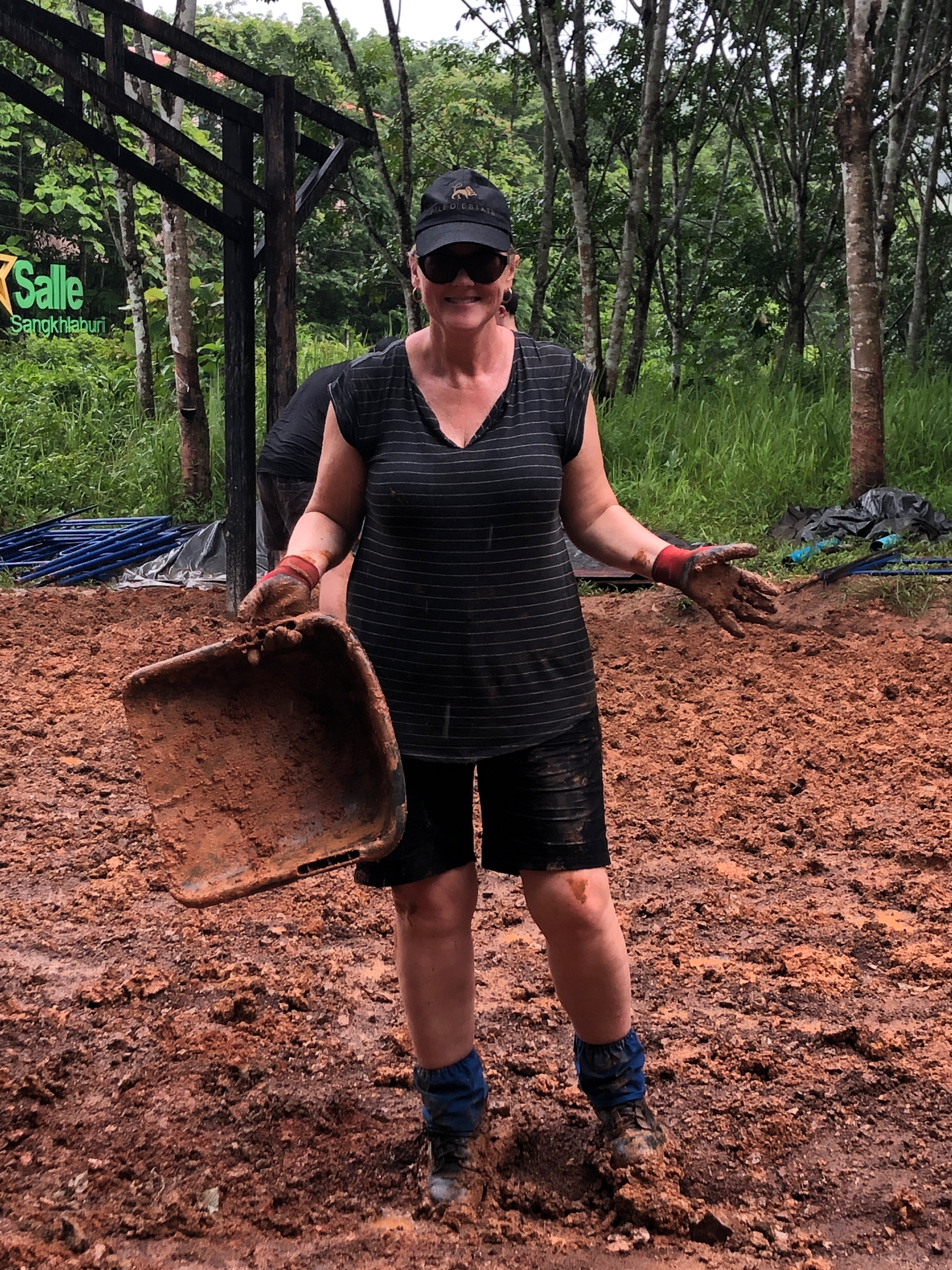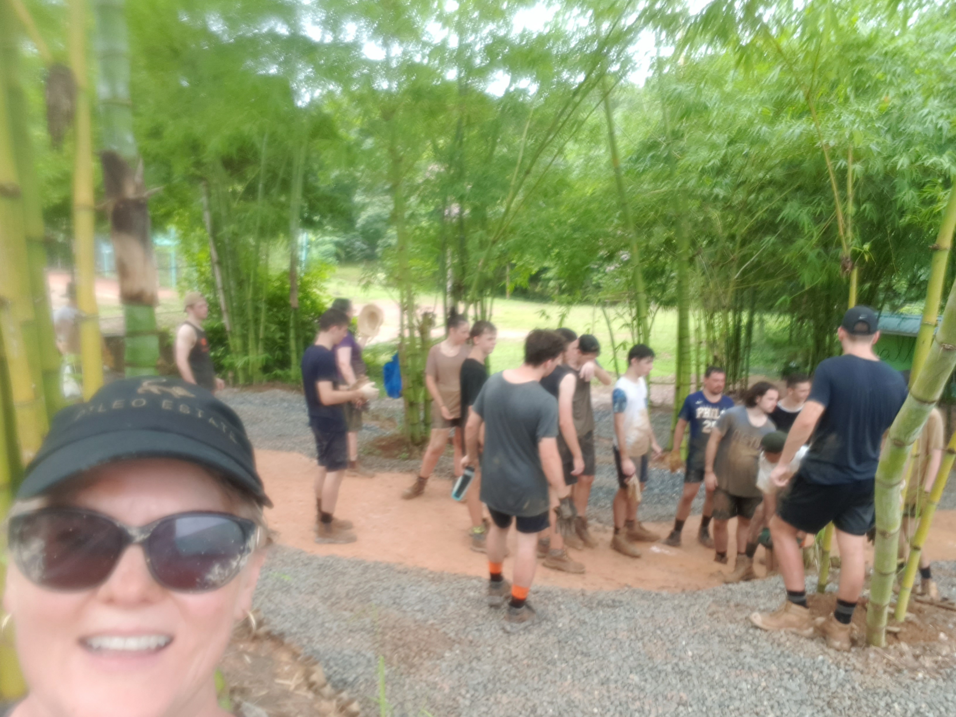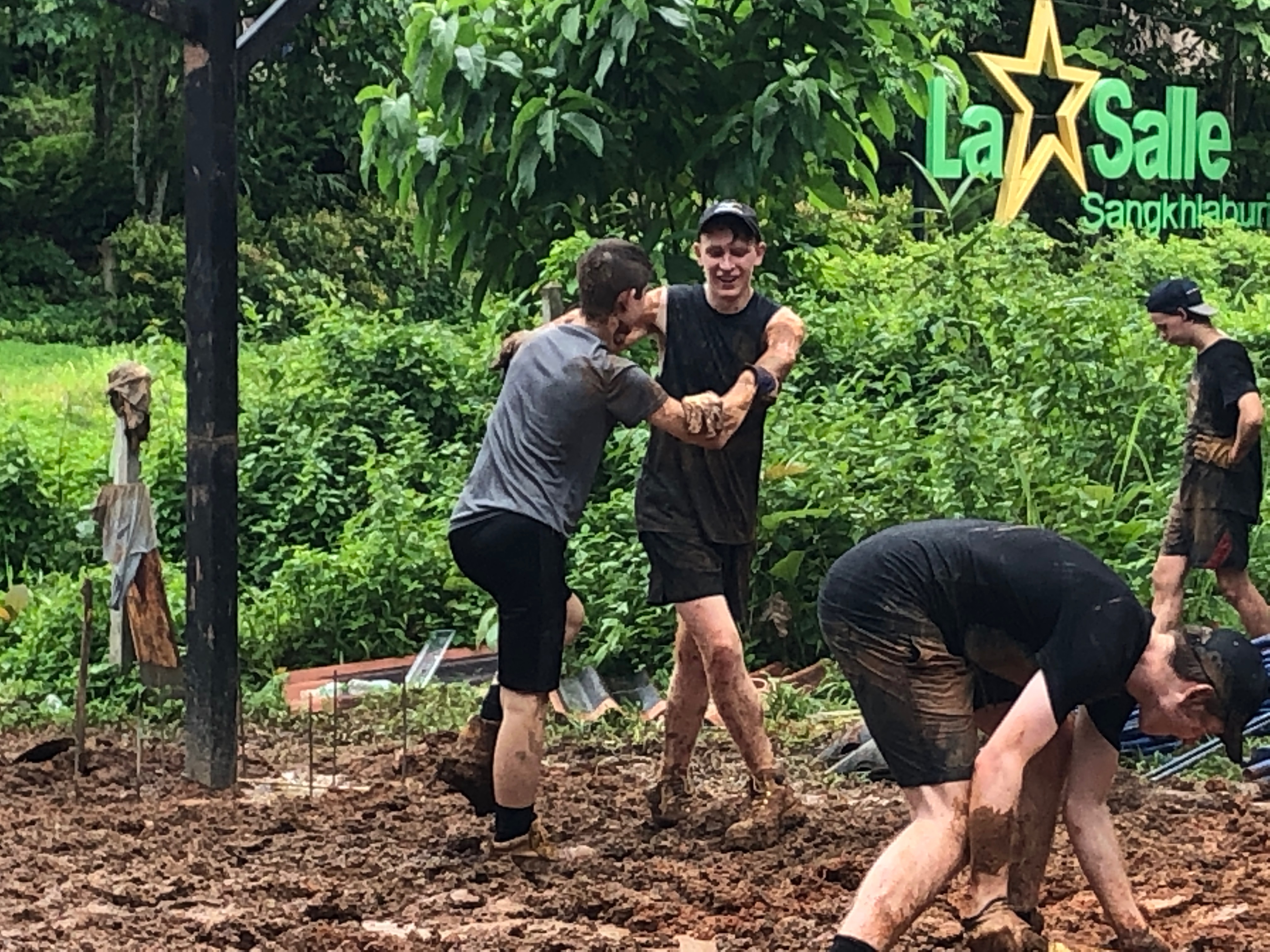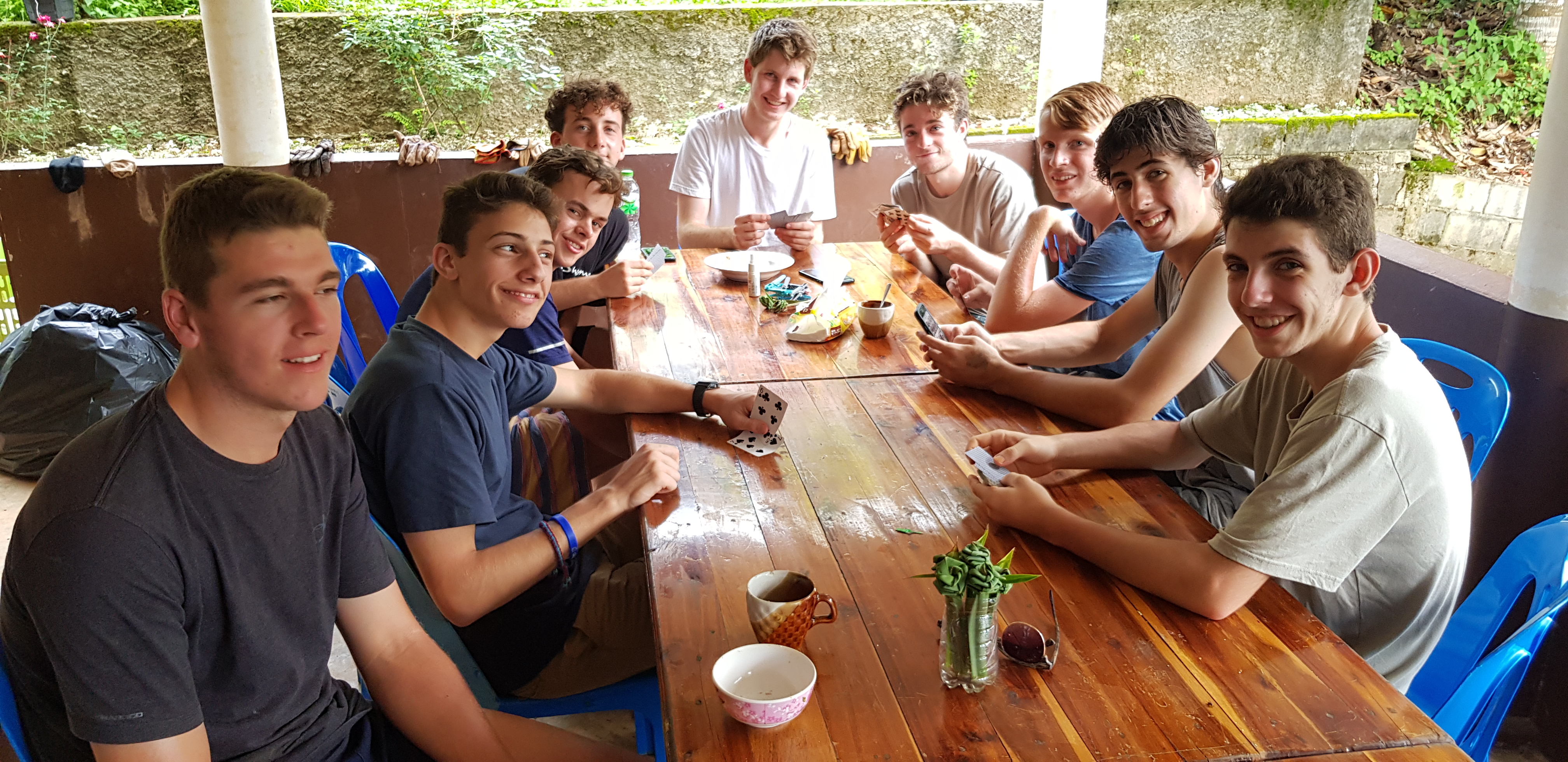 After breakfast, due to the overnight rain, we put a hold on the carpark work and instead began to form a “human centipede” as Billy’s analogy describes, as we transported two truck loads of gravel down a steep flight of stairs to a tiered surface that was prone to flooding. With Ethan and James, the captains for the day at the head of the centipede, and Billy claiming the glory at the tail-end, the “legs”, who worked away tirelessly all morning. Just as we thought we were getting close to finishing, another truck arrived and dumped another load at our displeasure.
