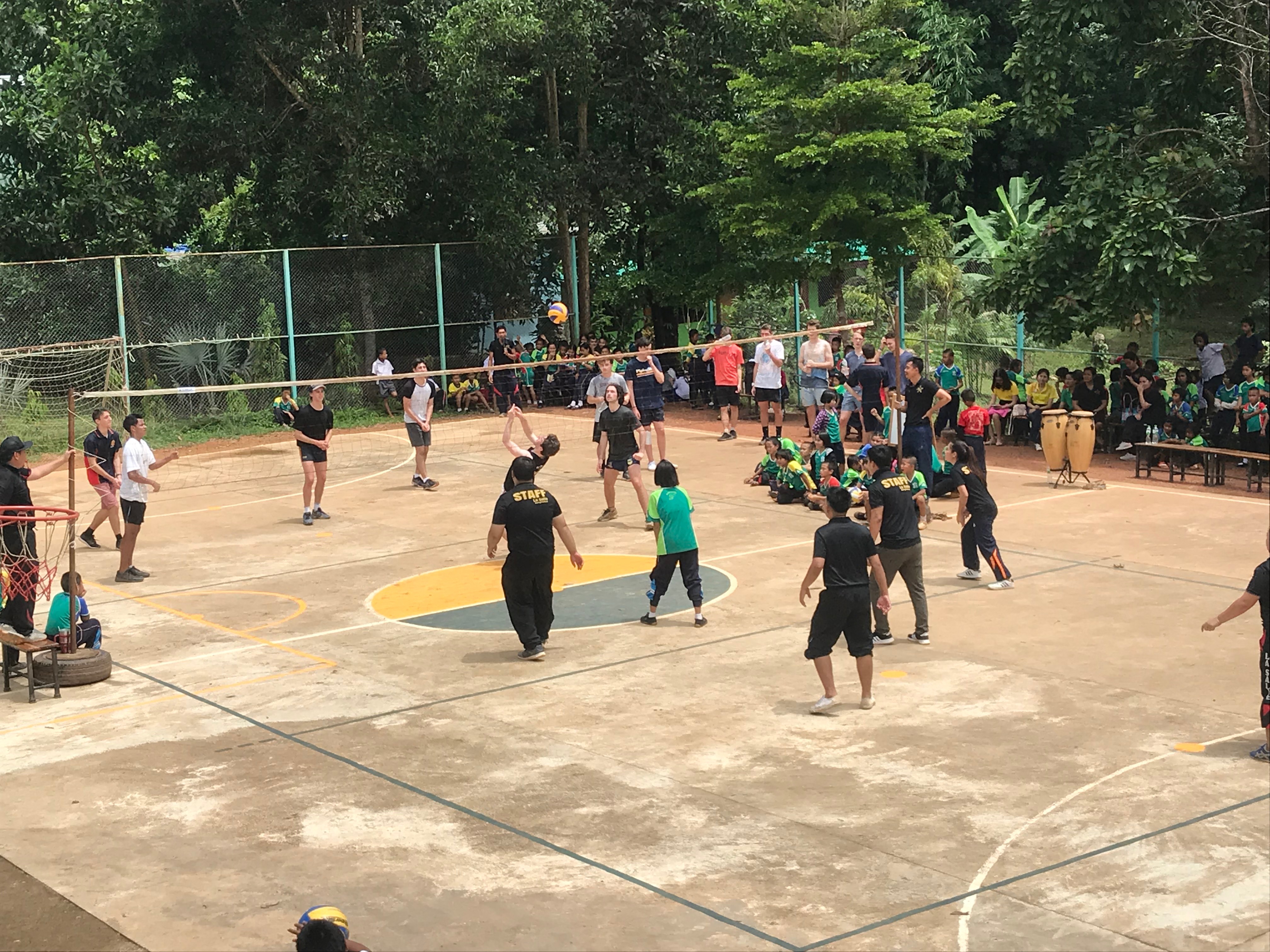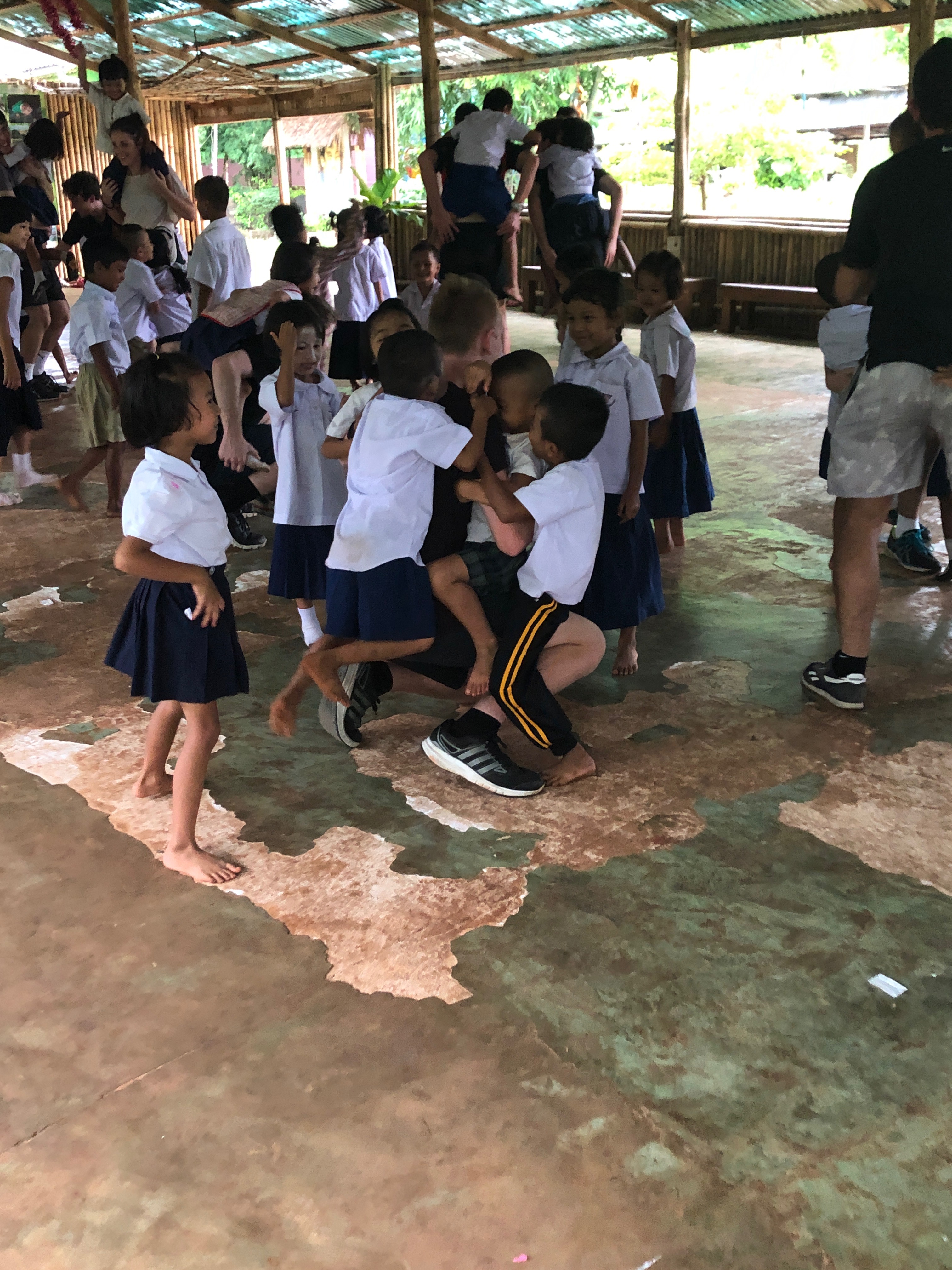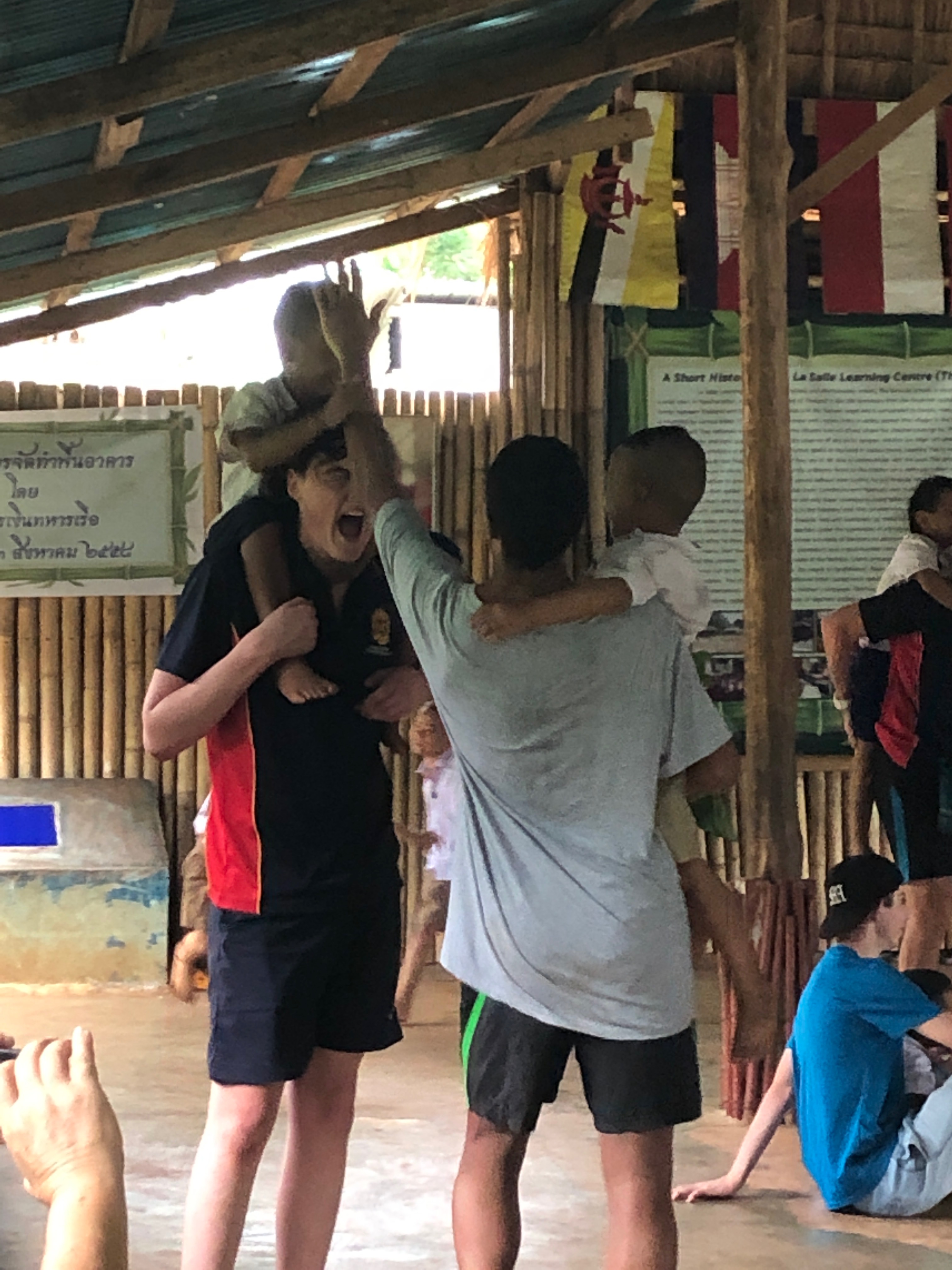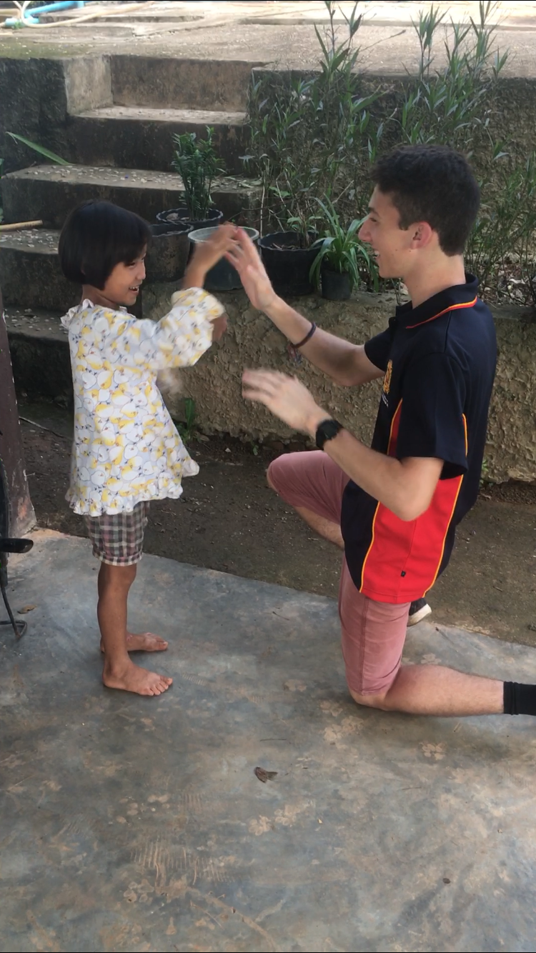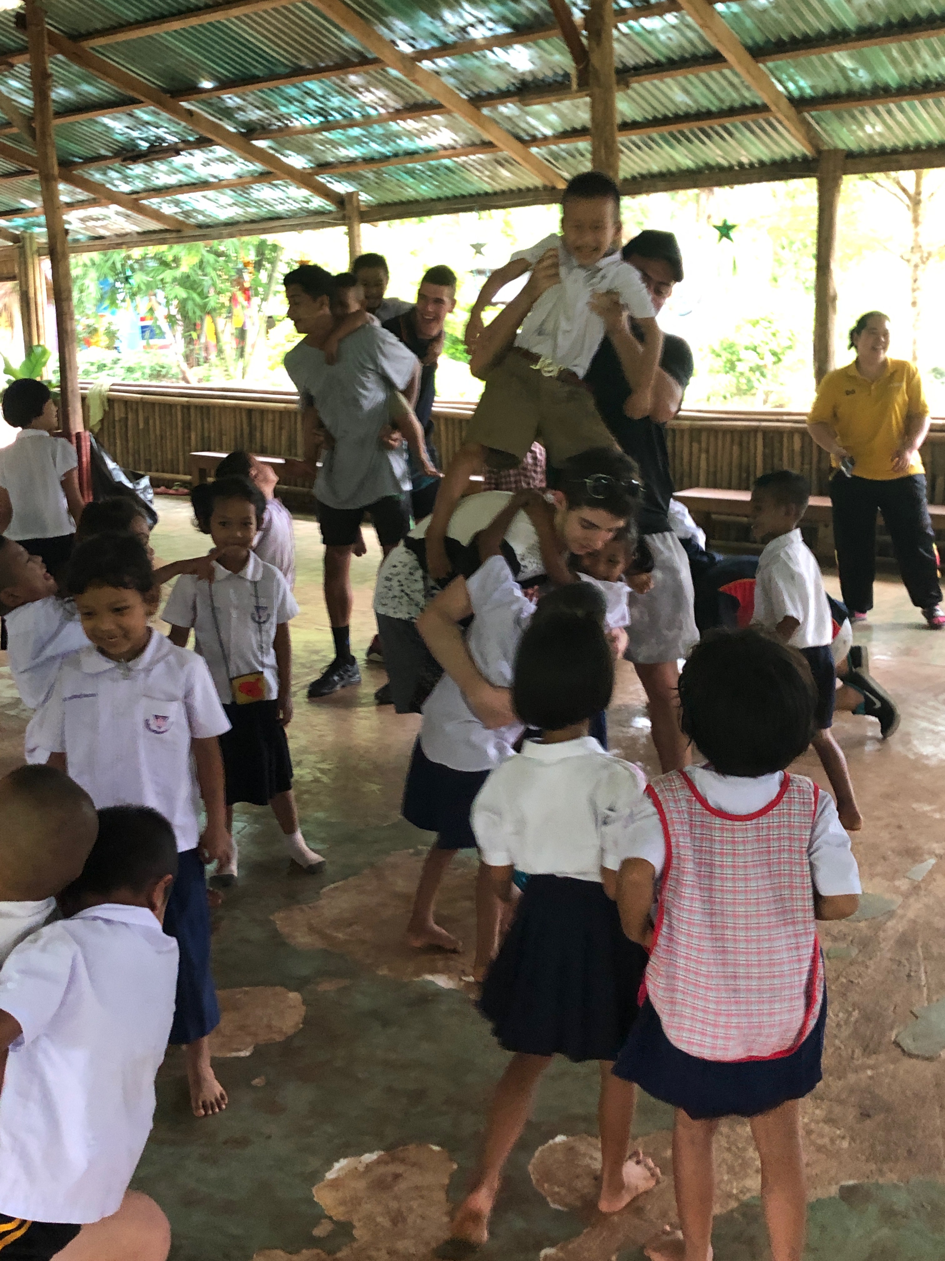 Lunch was celebrated with all the students, and as per usual we prayed and said our thanks to God prior to eating. We then proceeded to munch down some rice, pad thai, and some sausages that happened to be made of glue. After lunch, we joined the students in the yard for their break, and this consisted of hand clapping games, piggy back rides, laughter and infectious smiles on the faces of both the kids and us.