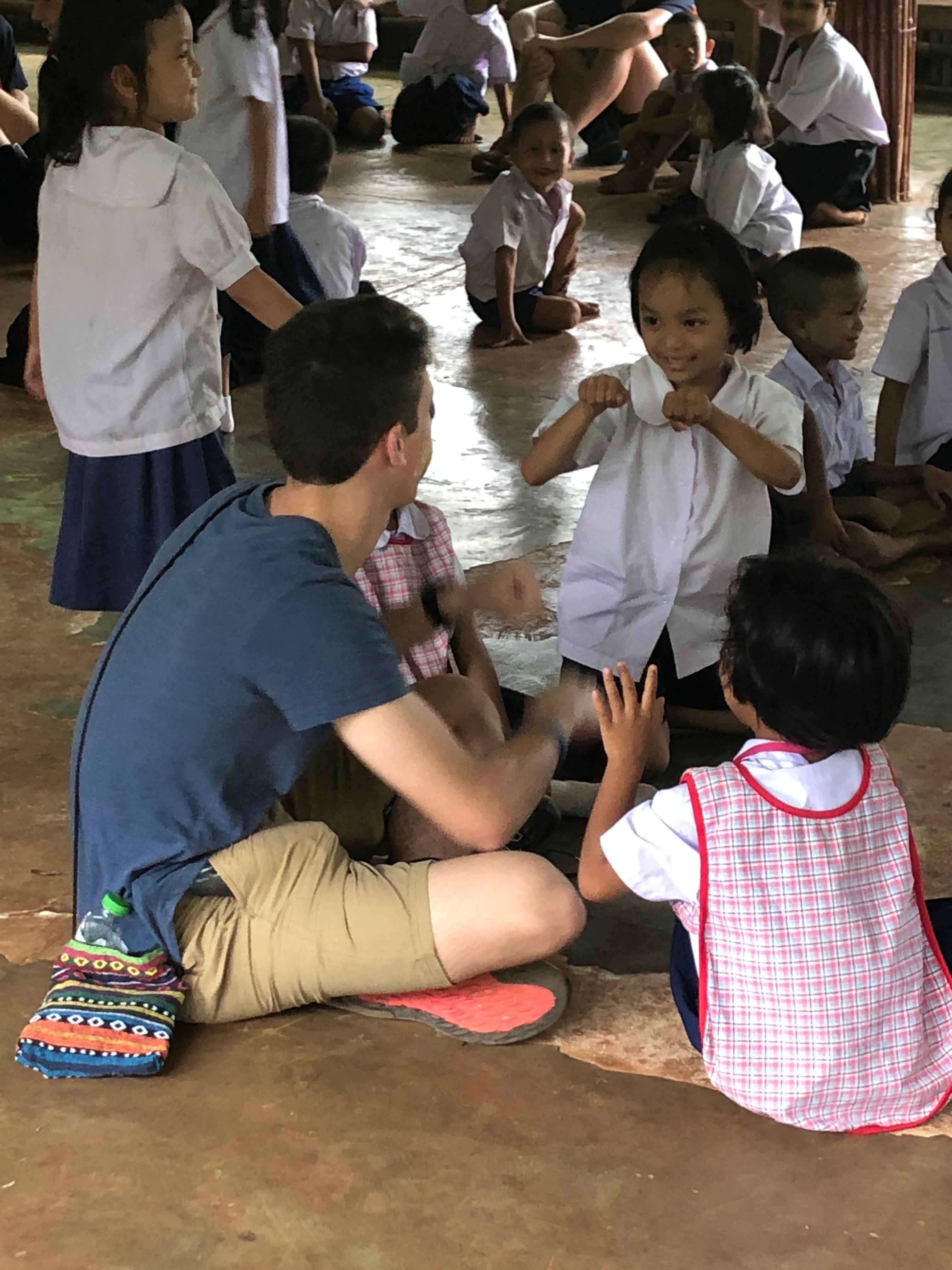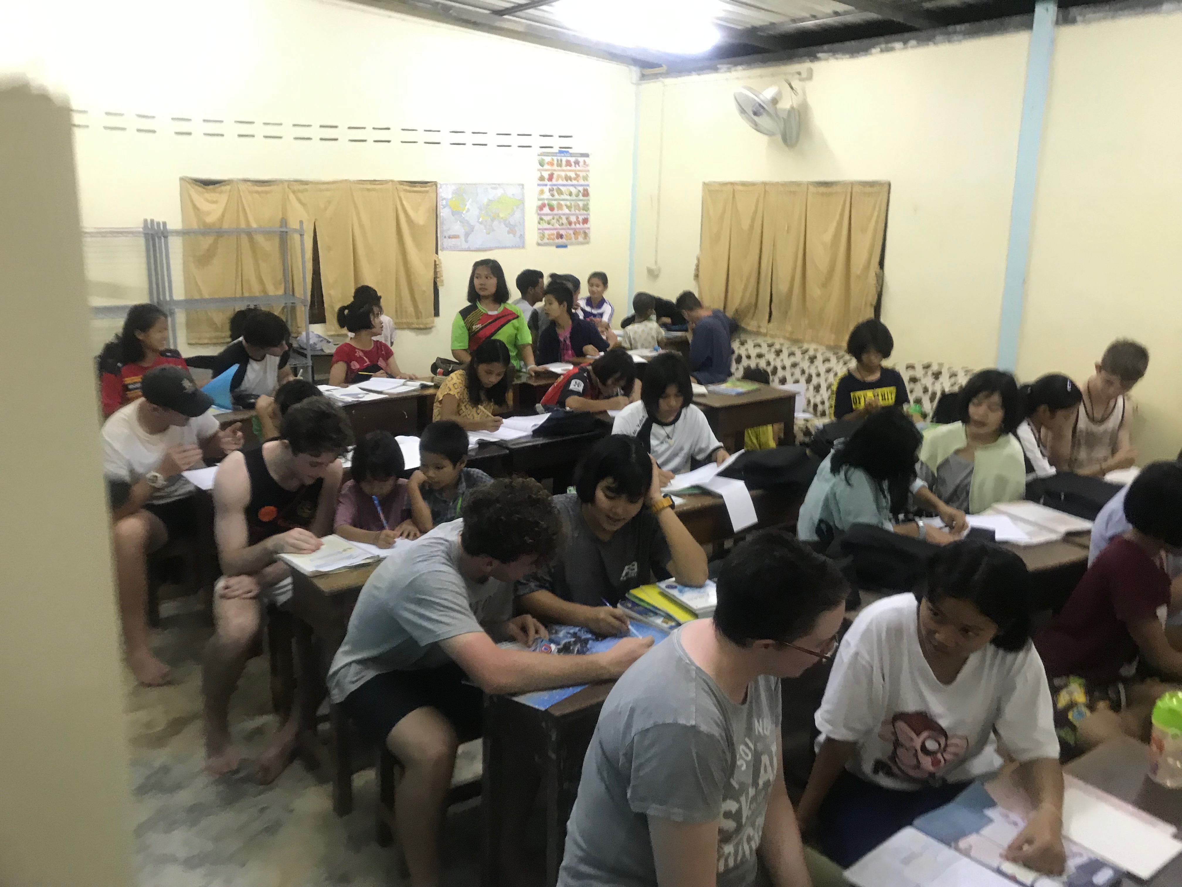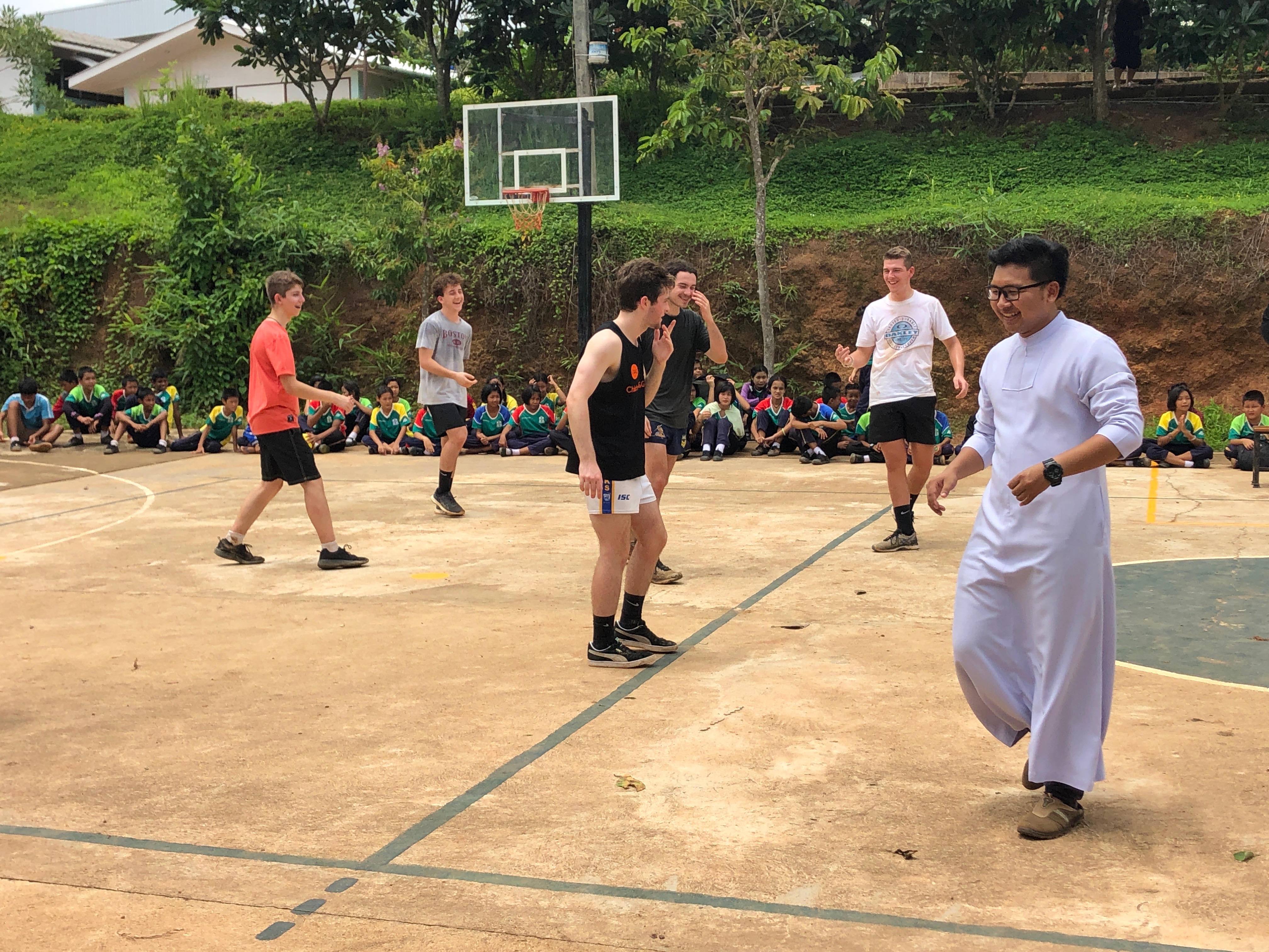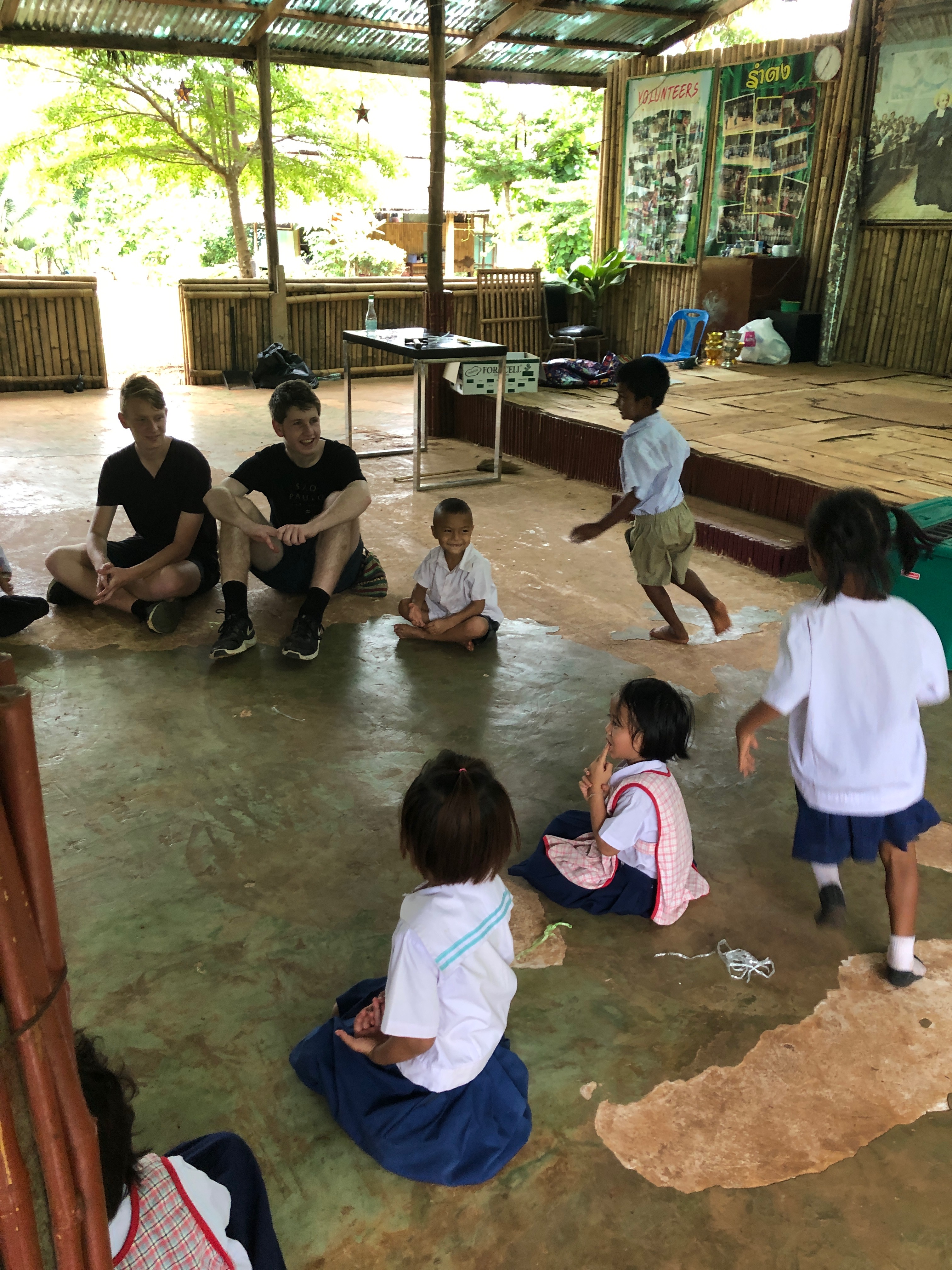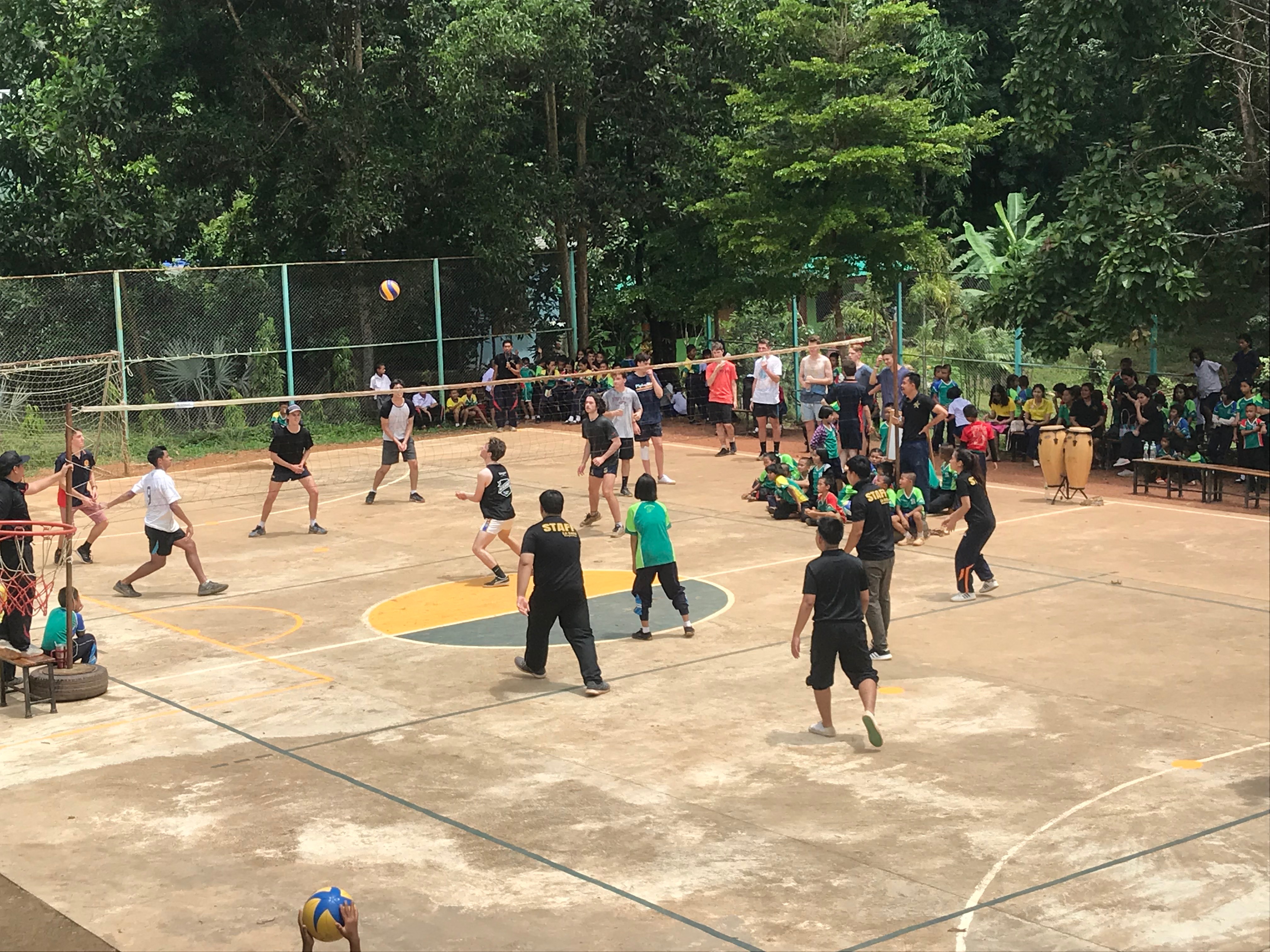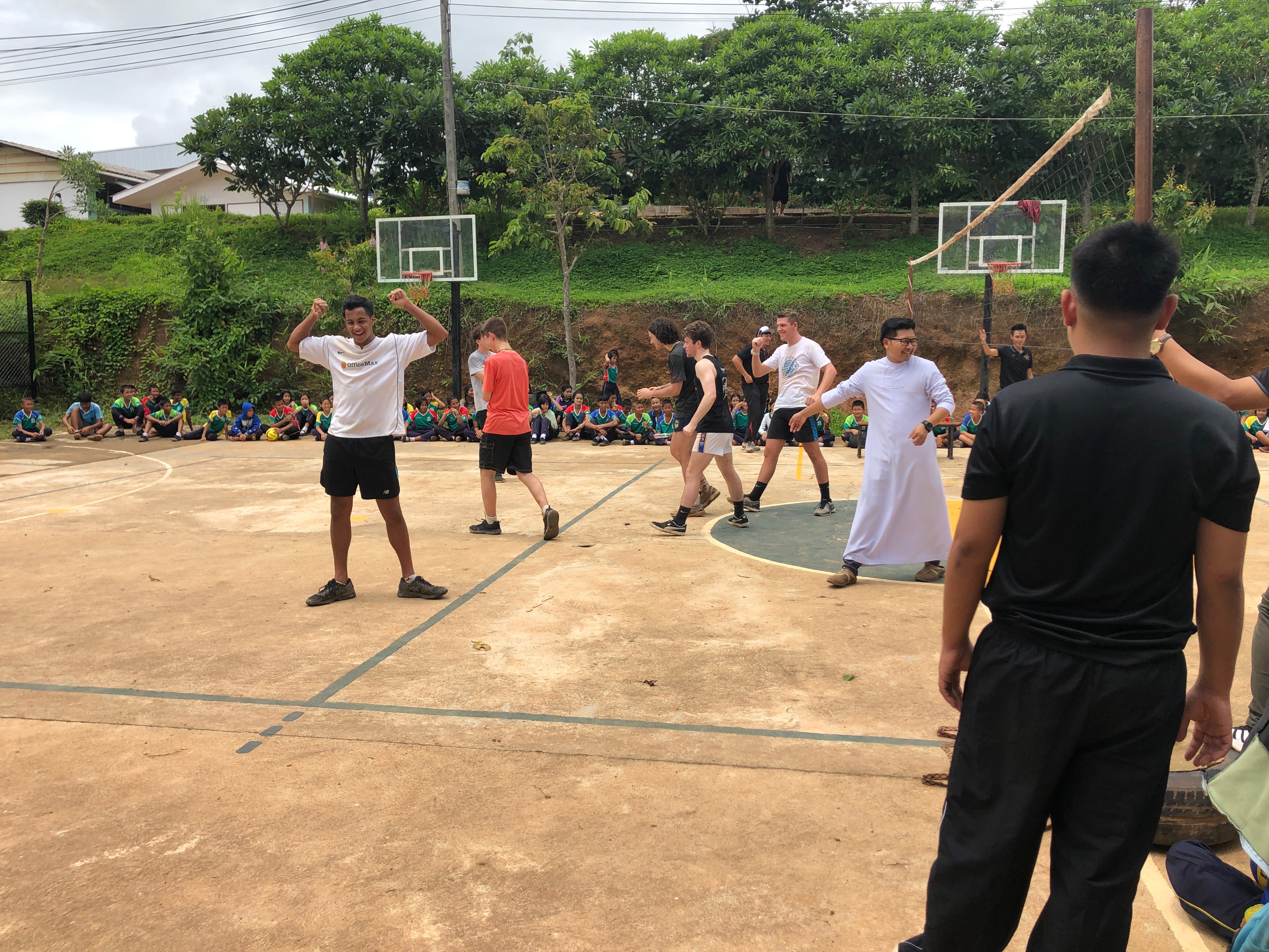 Lunch was celebrated with all the students, and as per usual we prayed and said our thanks to God prior to eating. We then proceeded to munch down some rice, pad thai, and some sausages that happened to be made of glue. After lunch, we joined the students in the yard for their break, and this consisted of hand clapping games, piggy back rides, laughter and infectious smiles on the faces of both the kids and us.