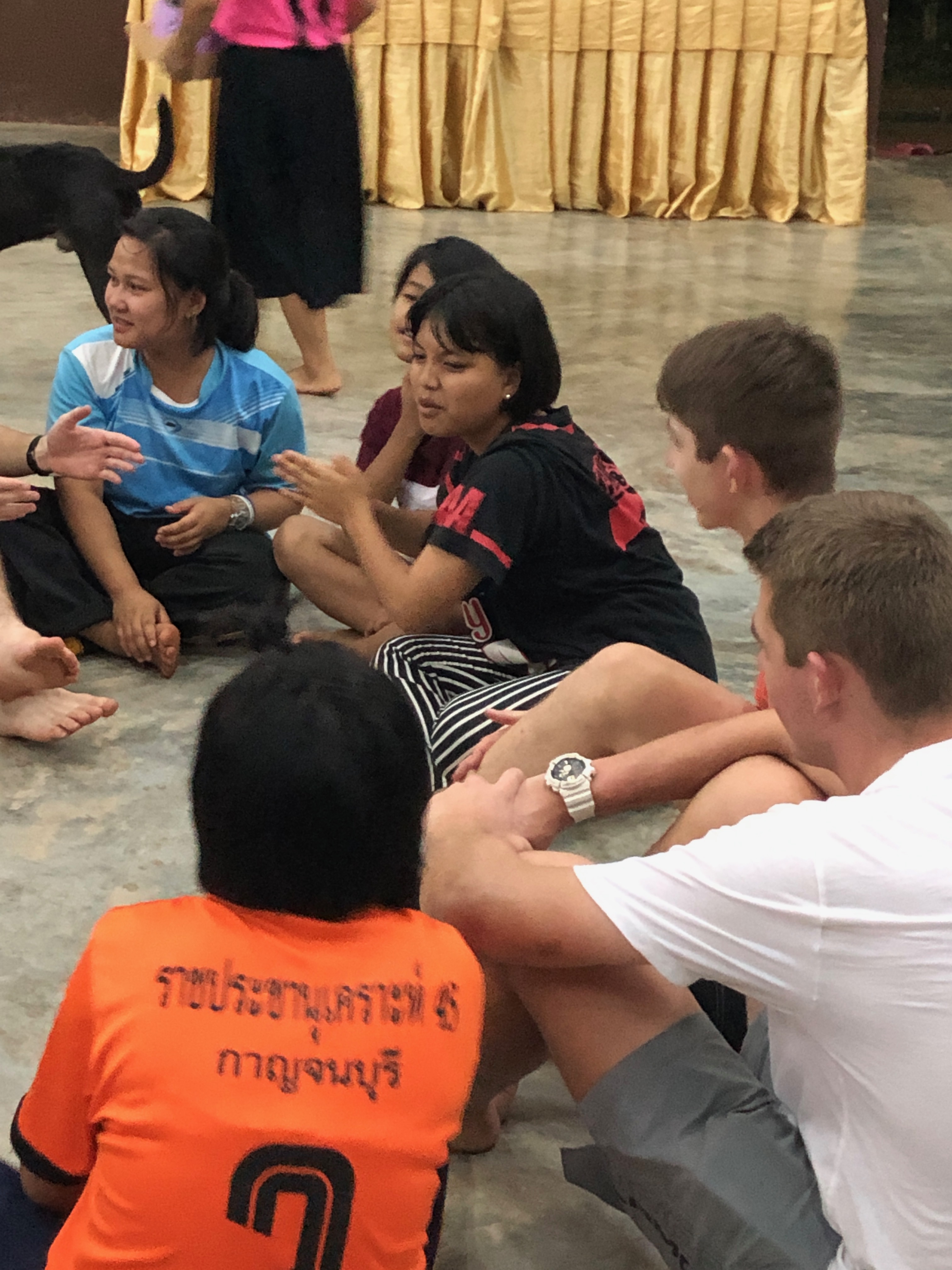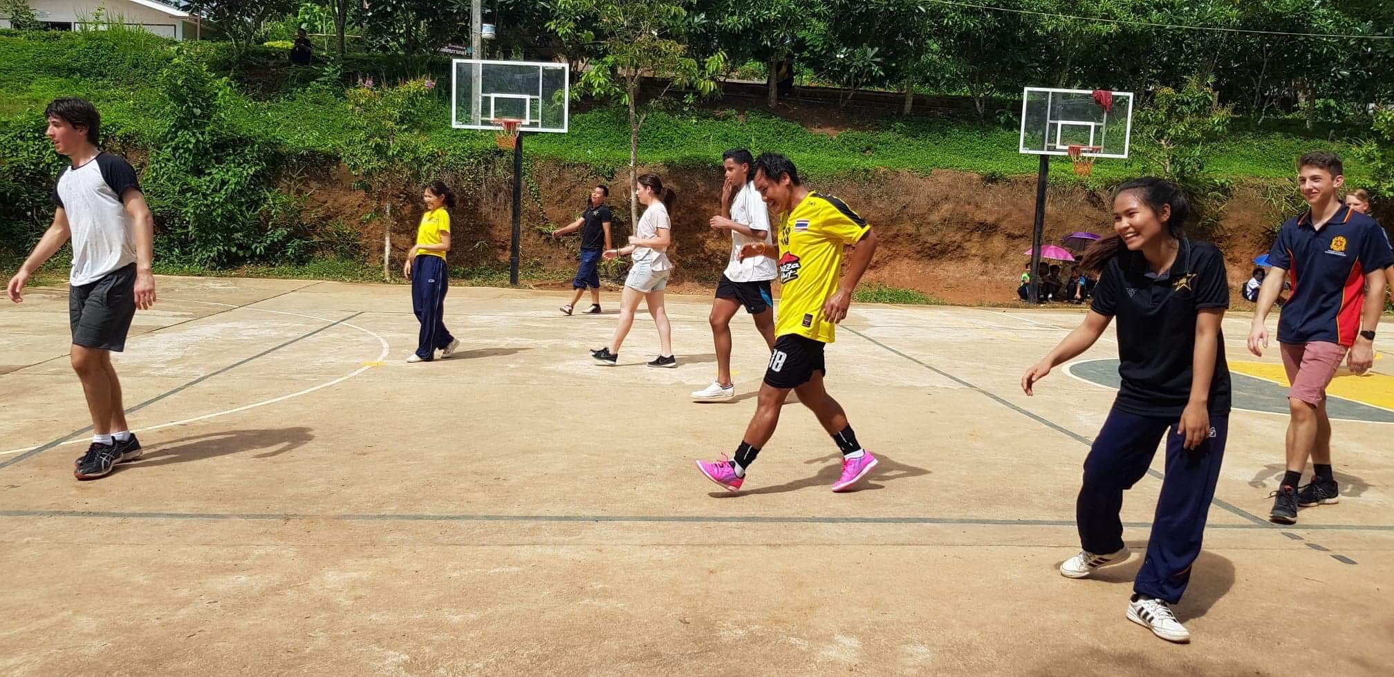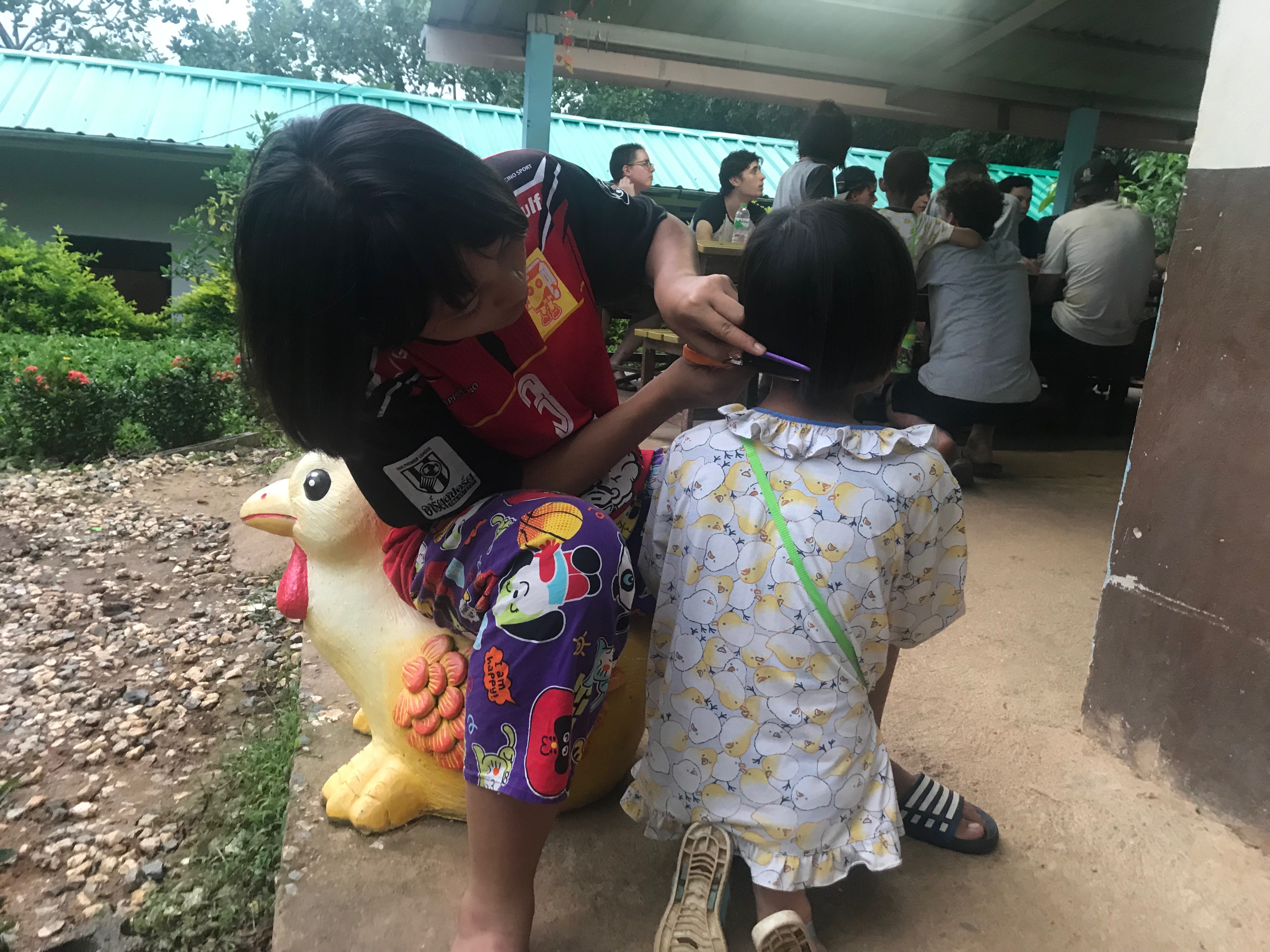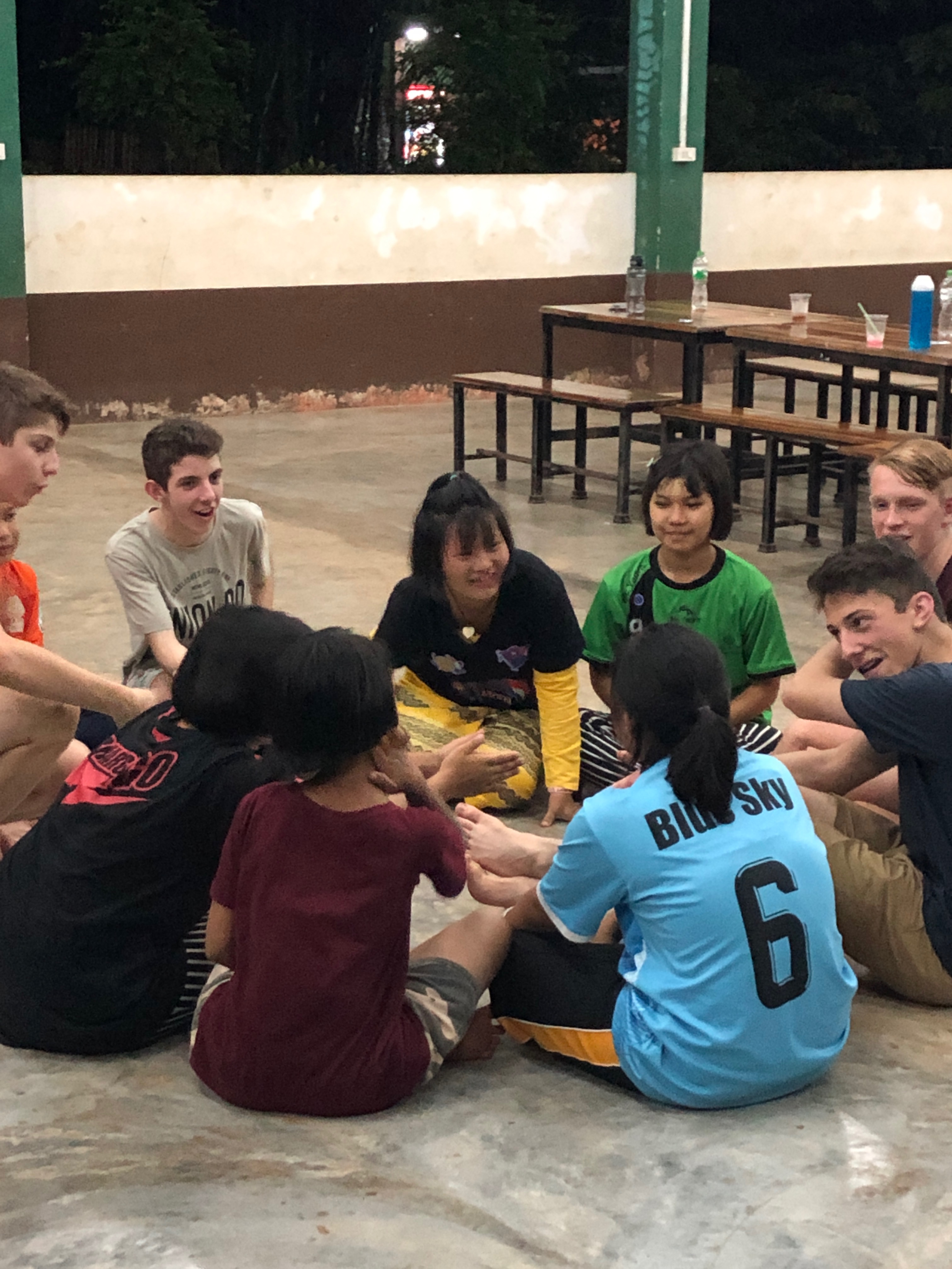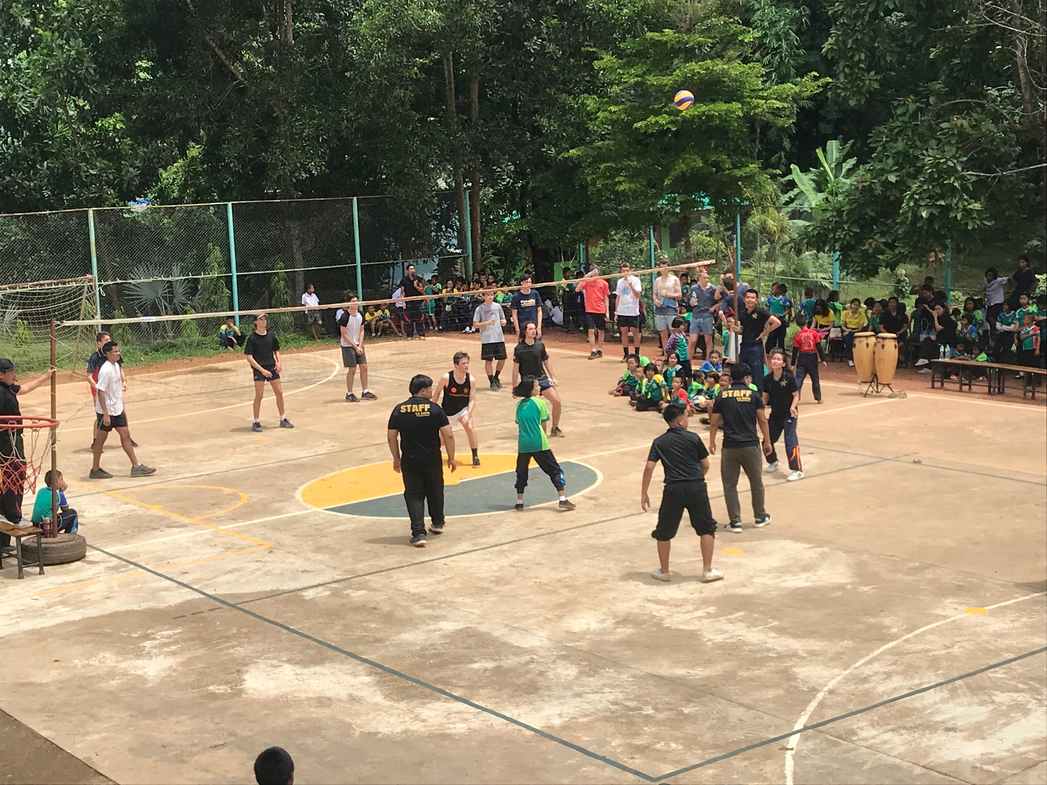 Lunch was celebrated with all the students, and as per usual we prayed and said our thanks to God prior to eating. We then proceeded to munch down some rice, pad thai, and some sausages that happened to be made of glue. After lunch, we joined the students in the yard for their break, and this consisted of hand clapping games, piggy back rides, laughter and infectious smiles on the faces of both the kids and us.