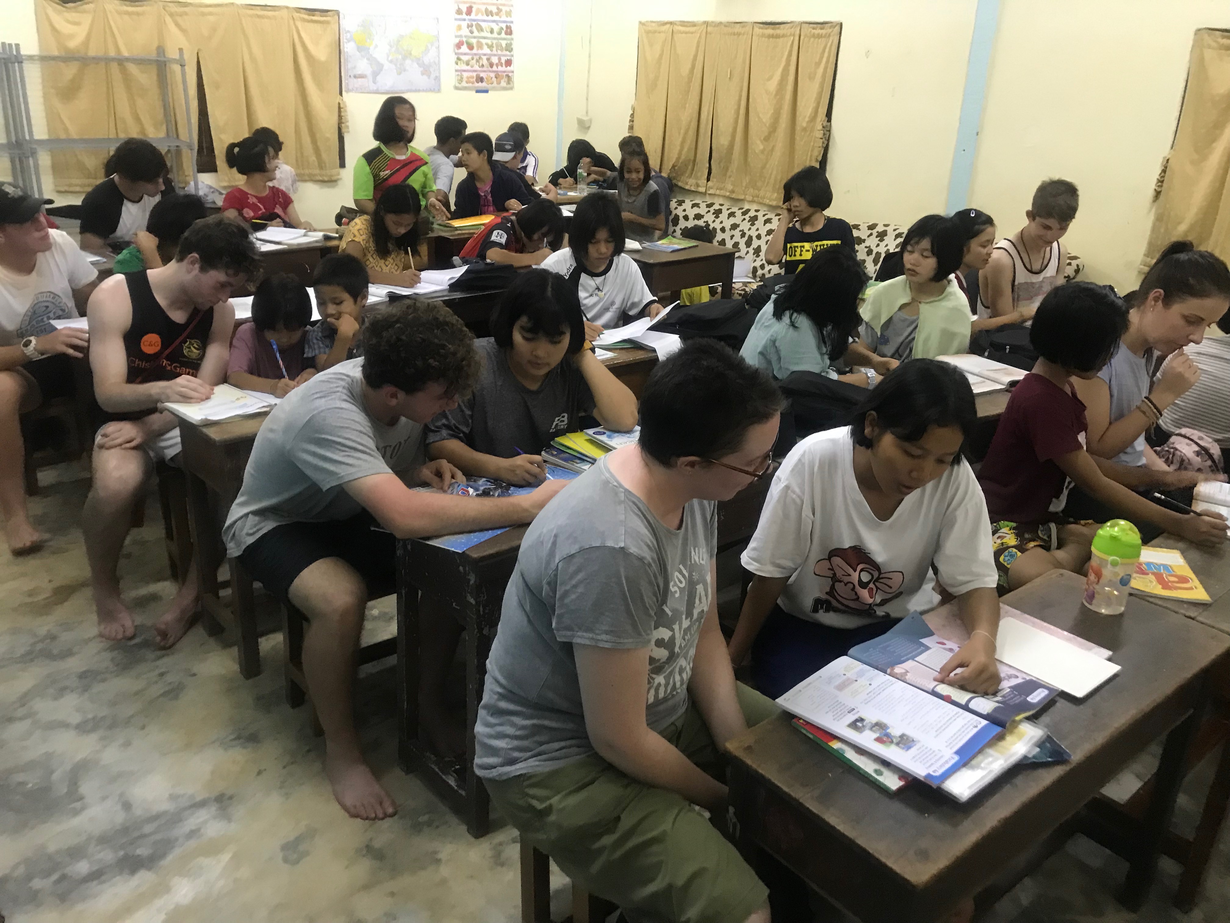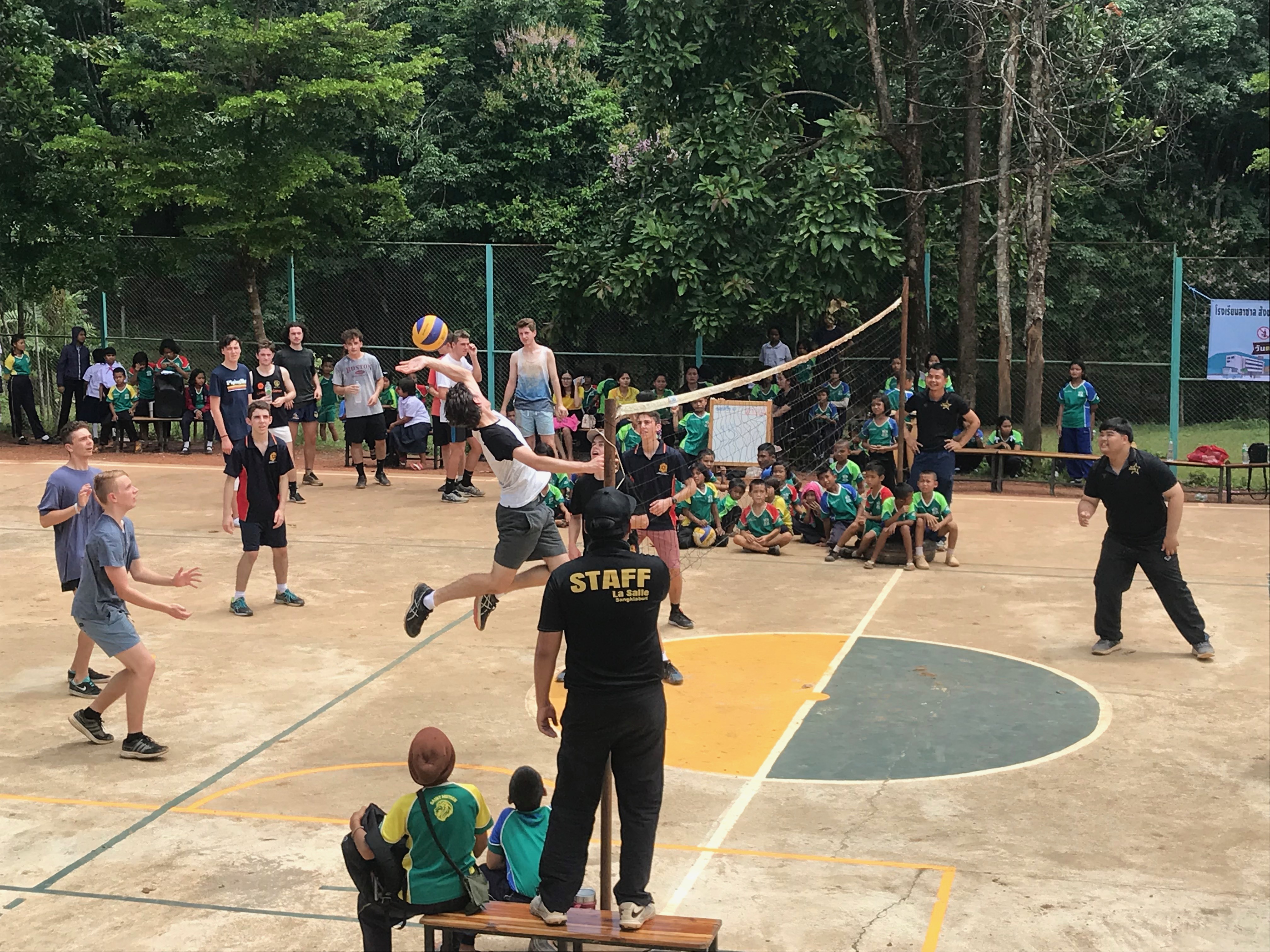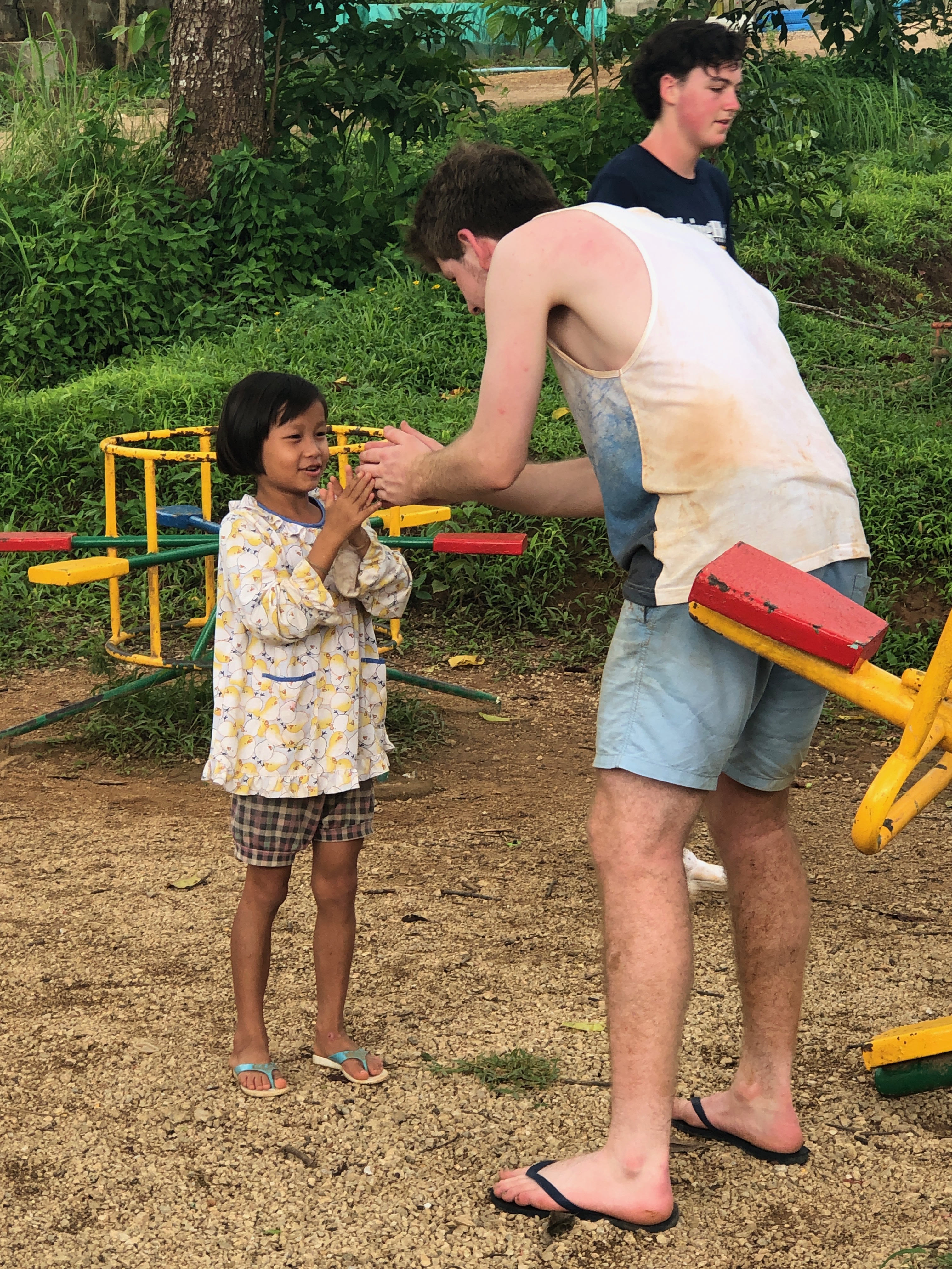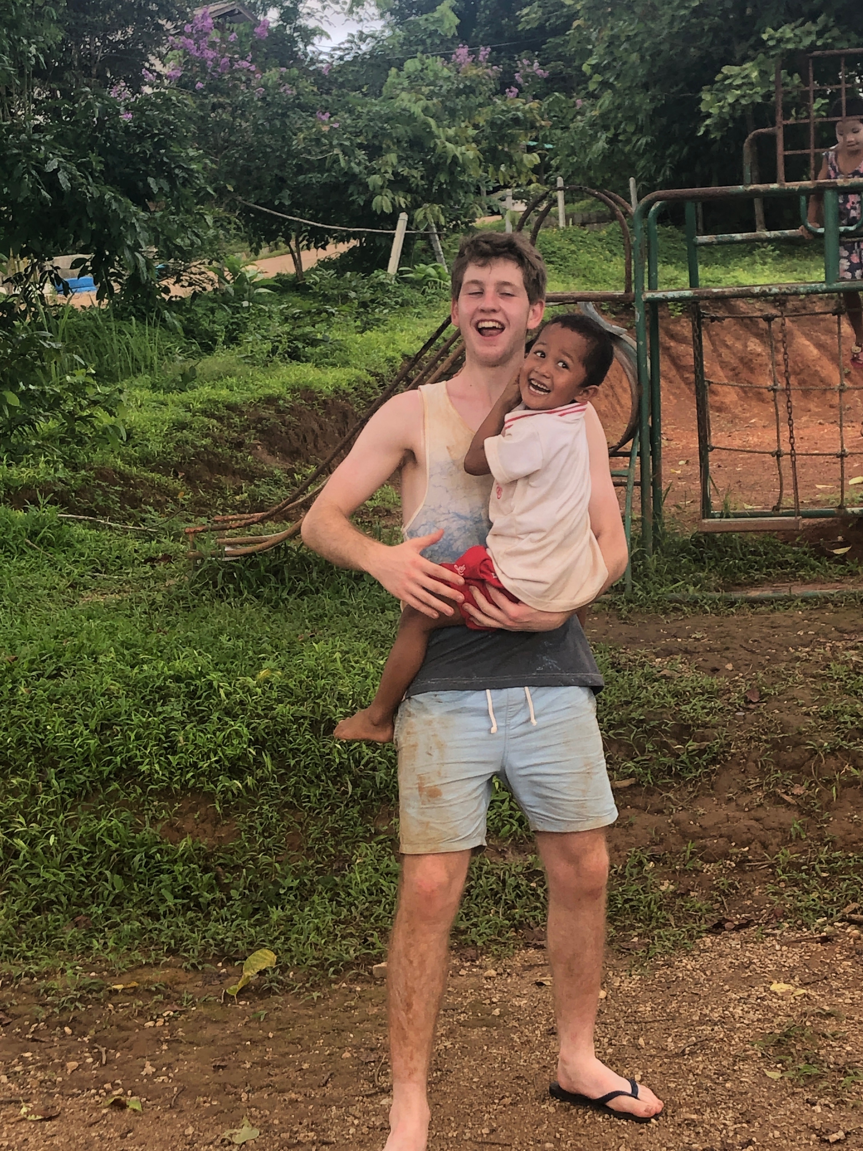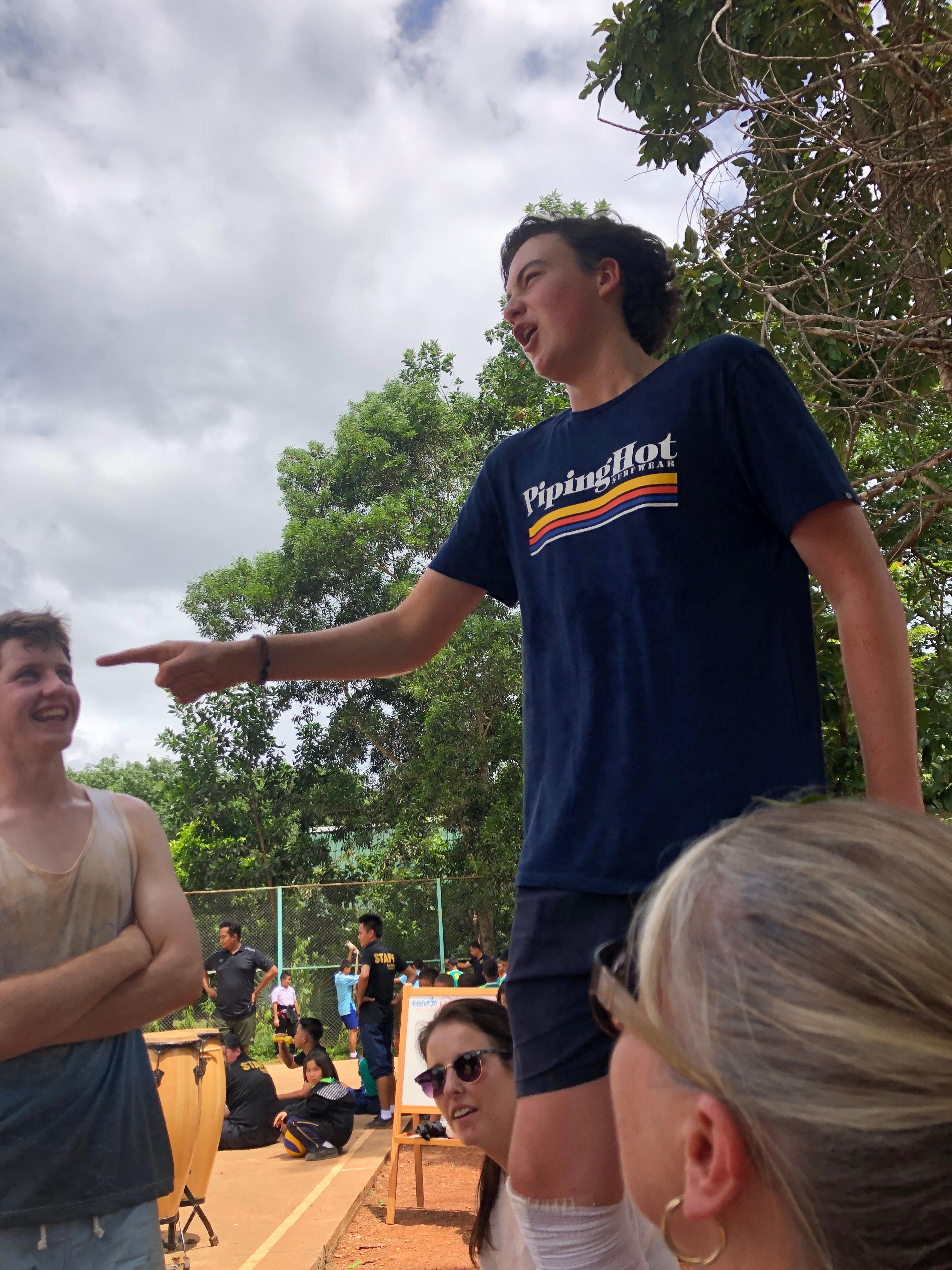 Lunch was celebrated with all the students, and as per usual we prayed and said our thanks to God prior to eating. We then proceeded to munch down some rice, pad thai, and some sausages that happened to be made of glue. After lunch, we joined the students in the yard for their break, and this consisted of hand clapping games, piggy back rides, laughter and infectious smiles on the faces of both the kids and us.