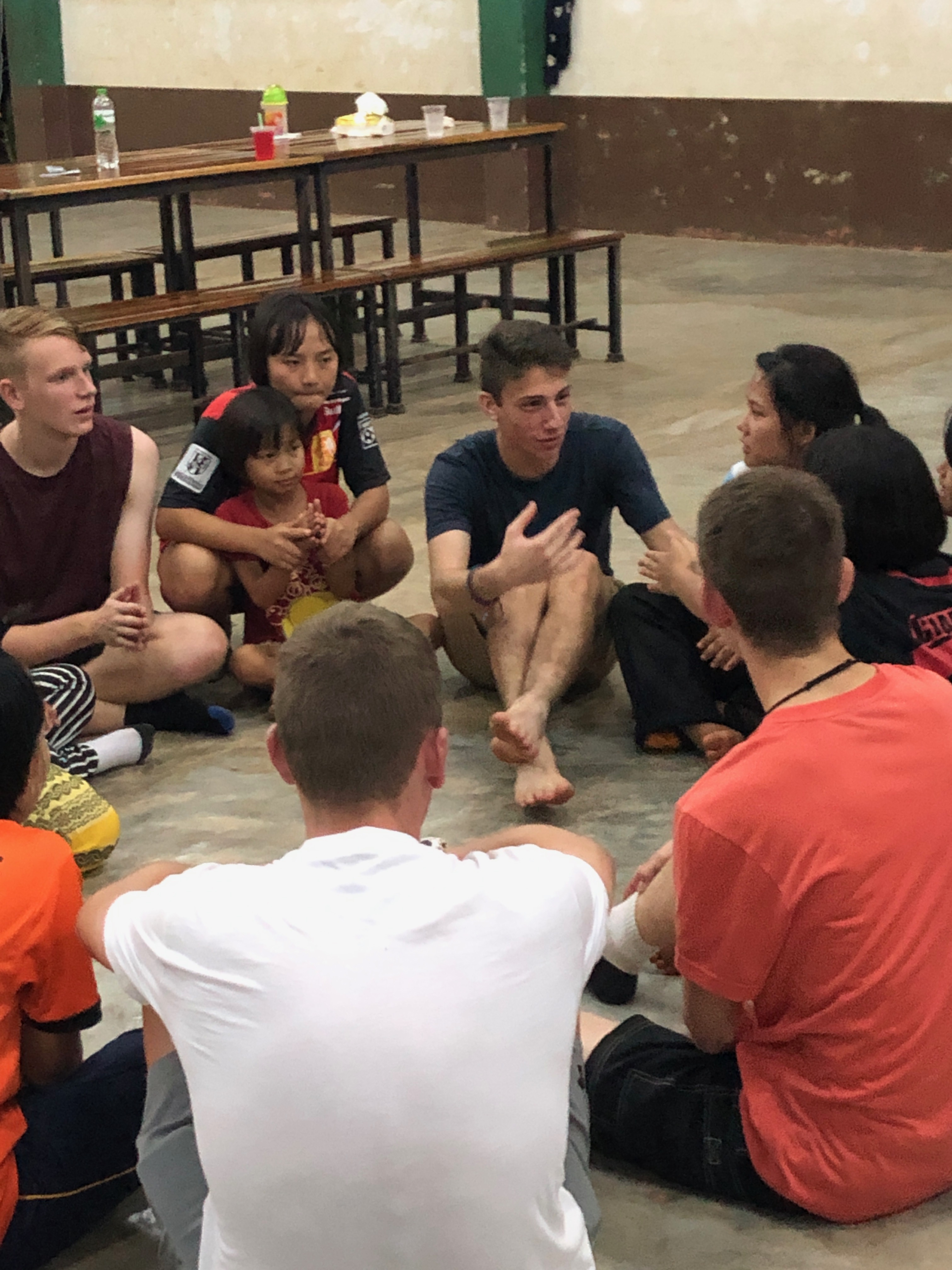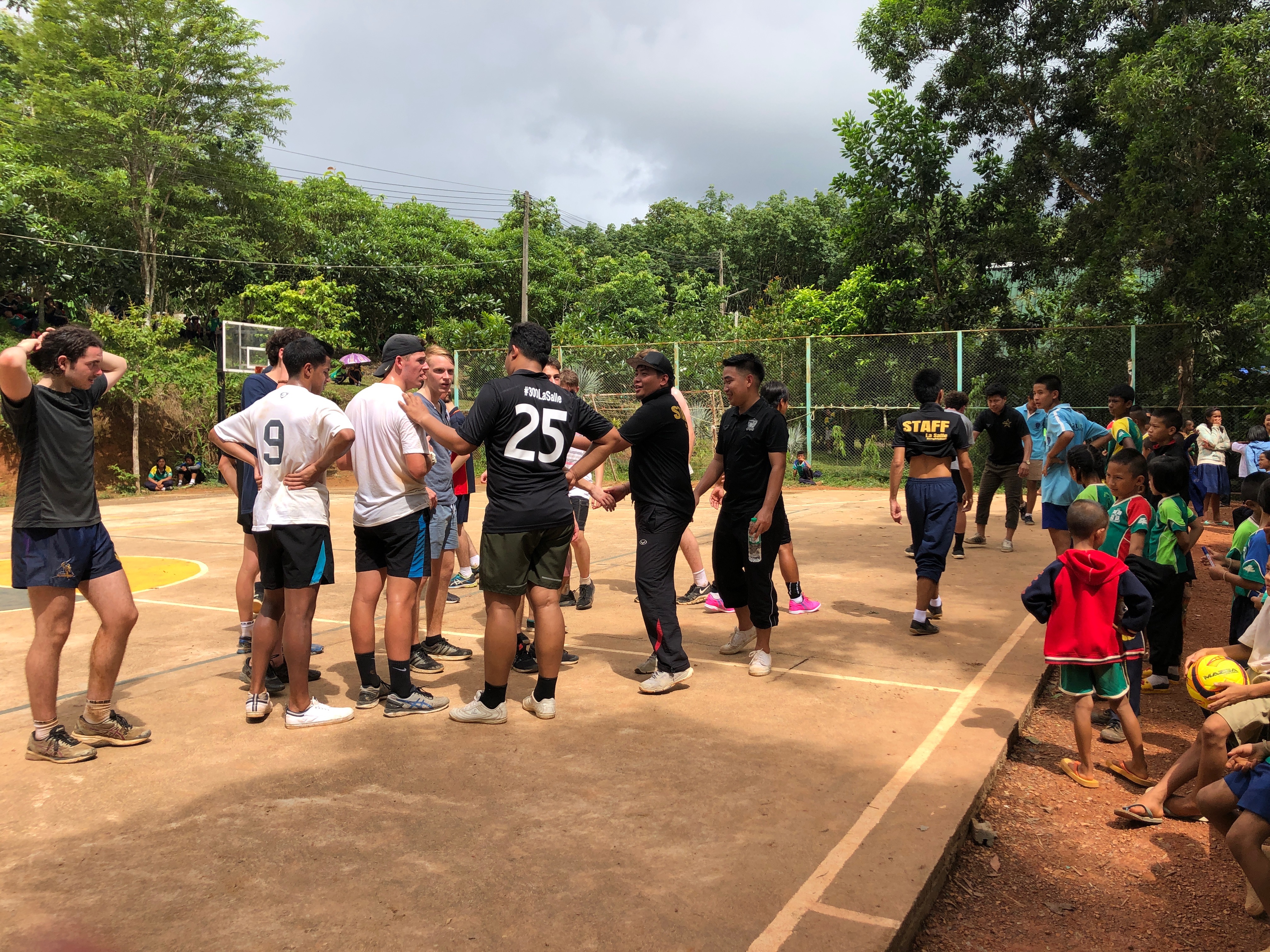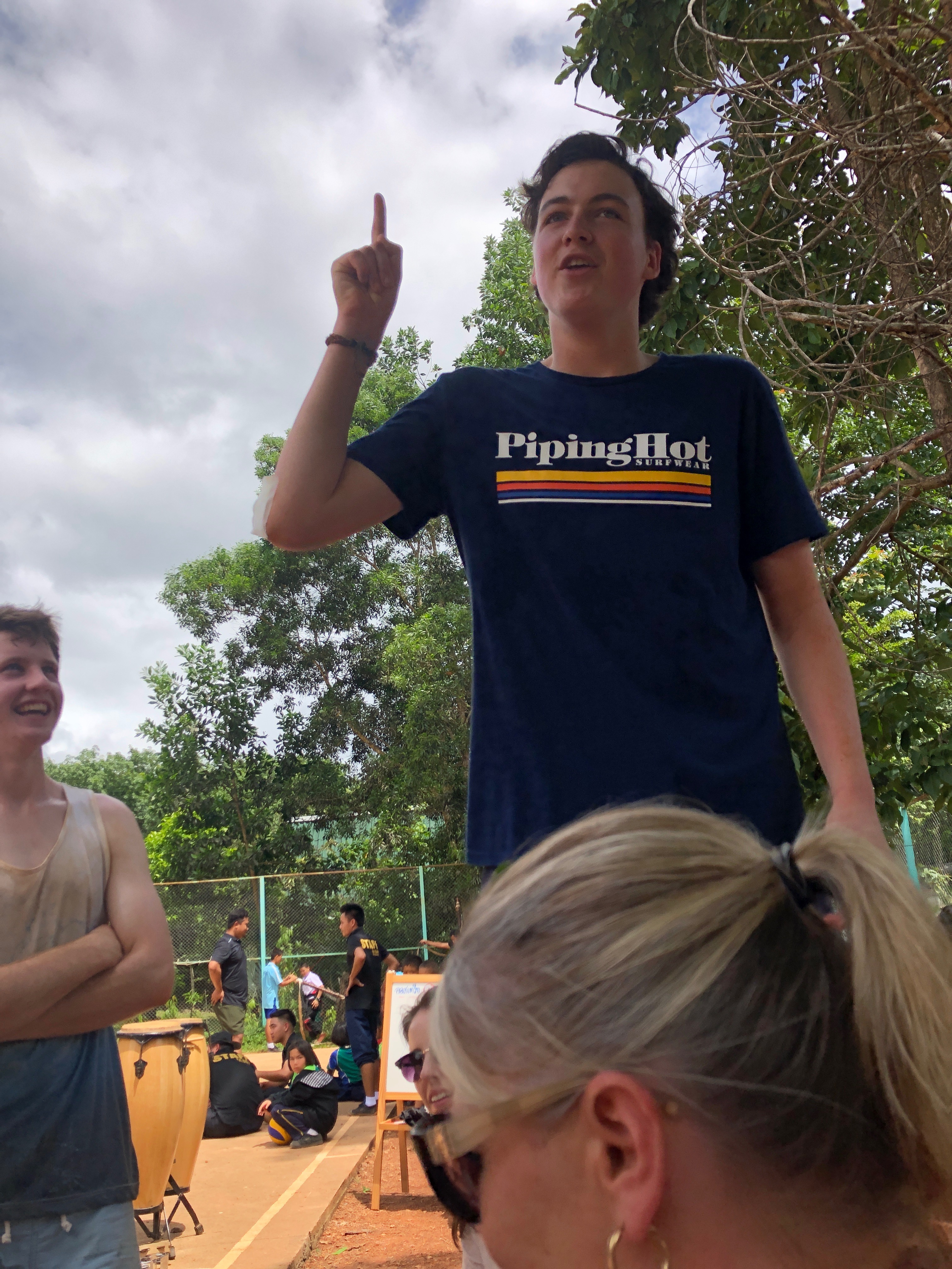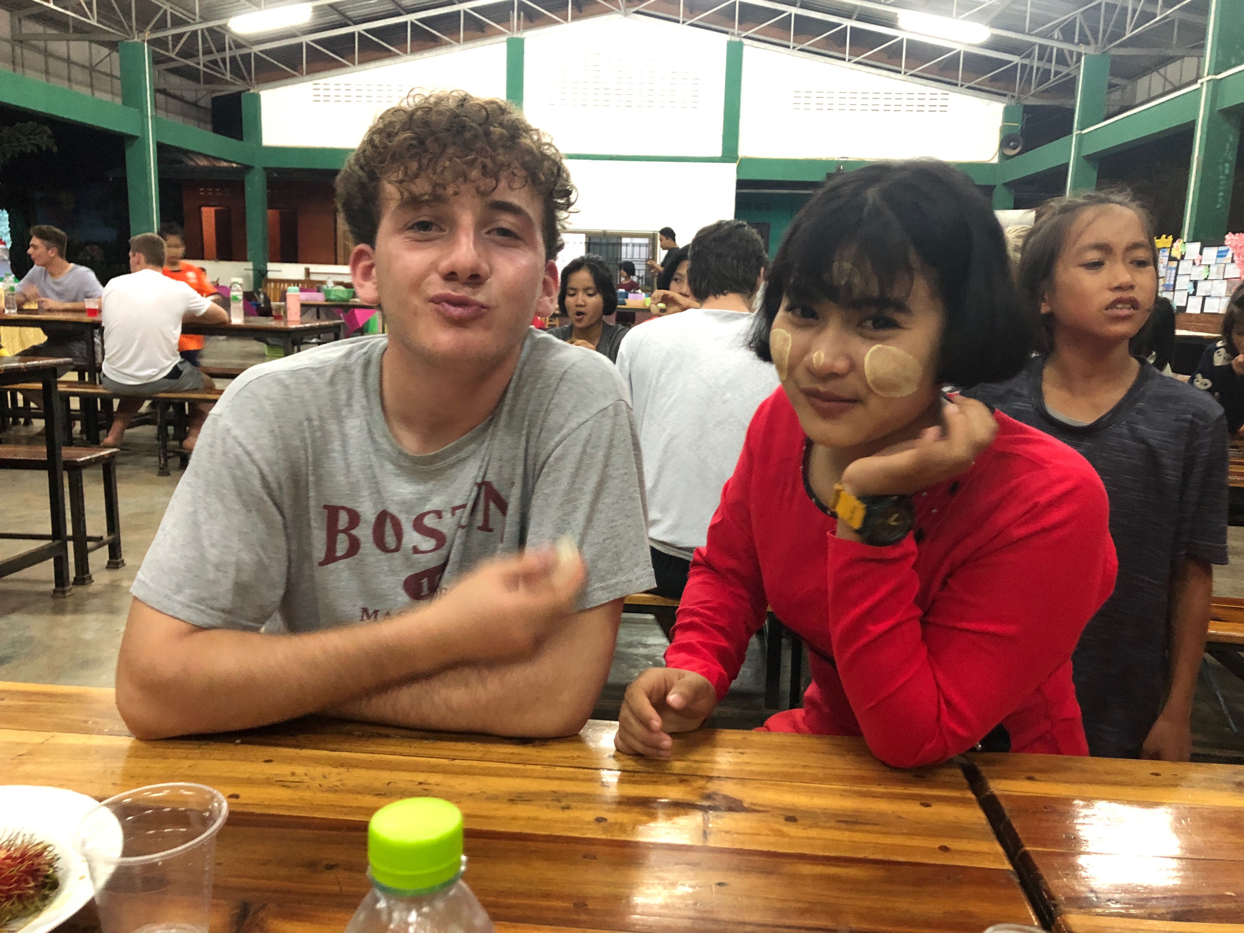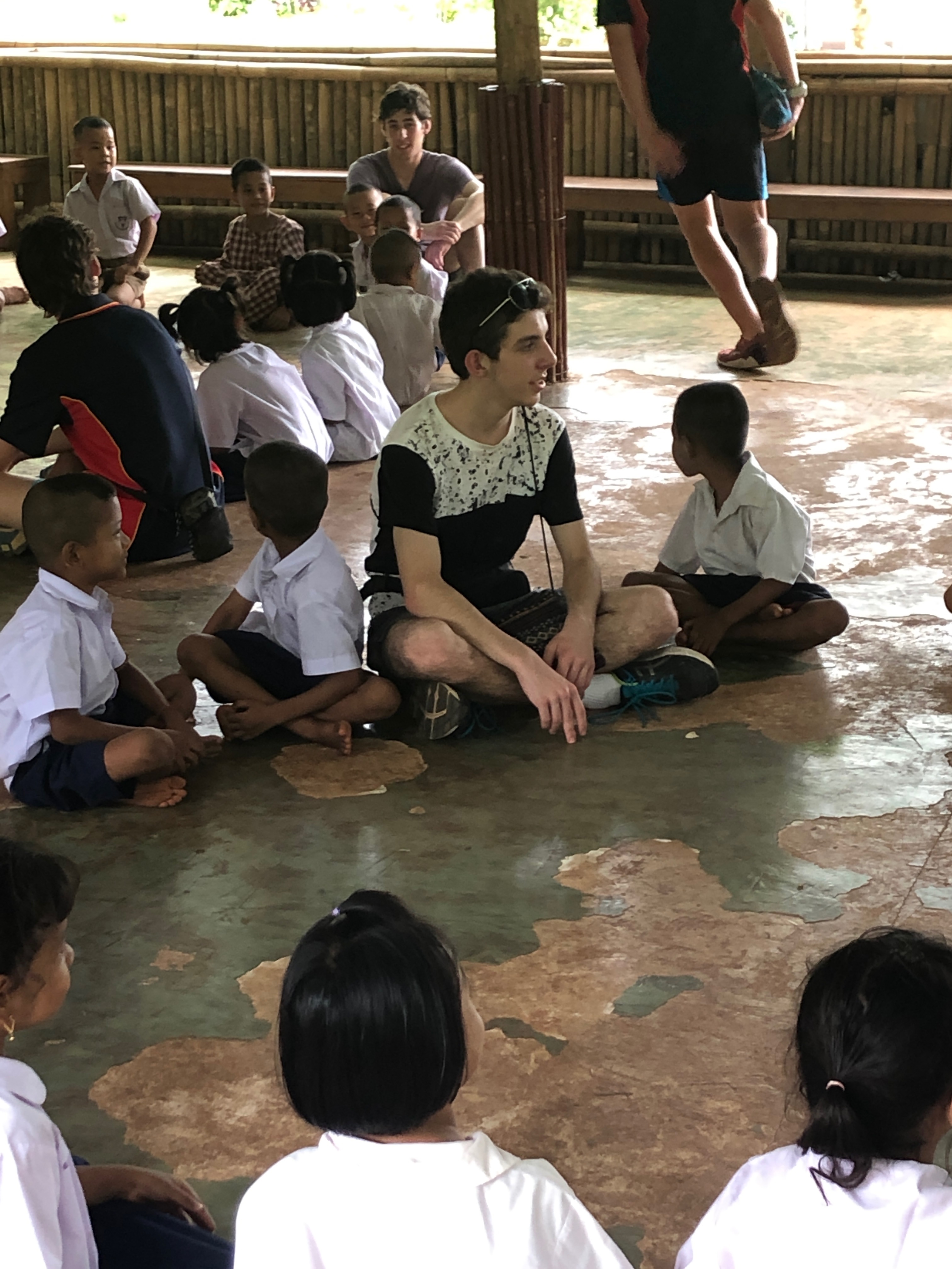 Lunch was celebrated with all the students, and as per usual we prayed and said our thanks to God prior to eating. We then proceeded to munch down some rice, pad thai, and some sausages that happened to be made of glue. After lunch, we joined the students in the yard for their break, and this consisted of hand clapping games, piggy back rides, laughter and infectious smiles on the faces of both the kids and us.