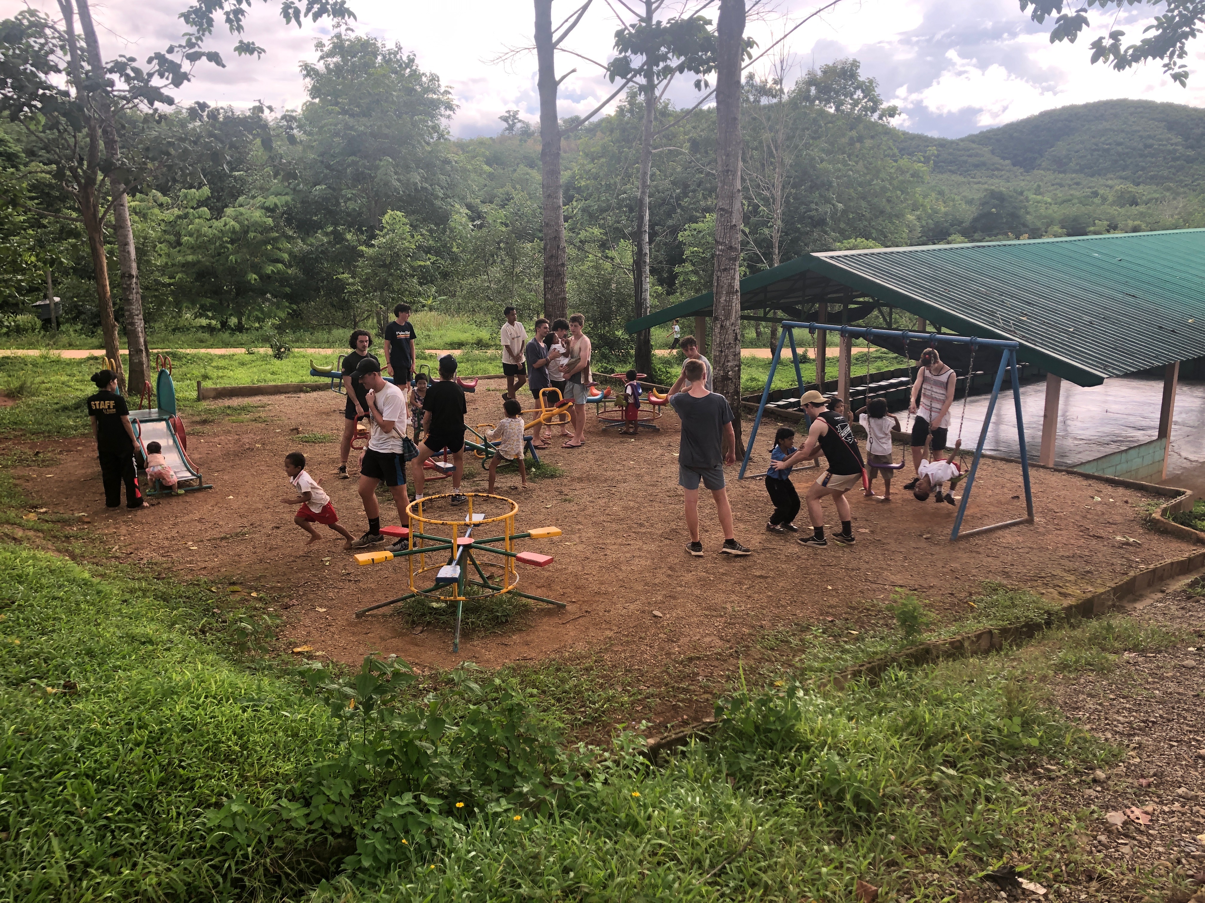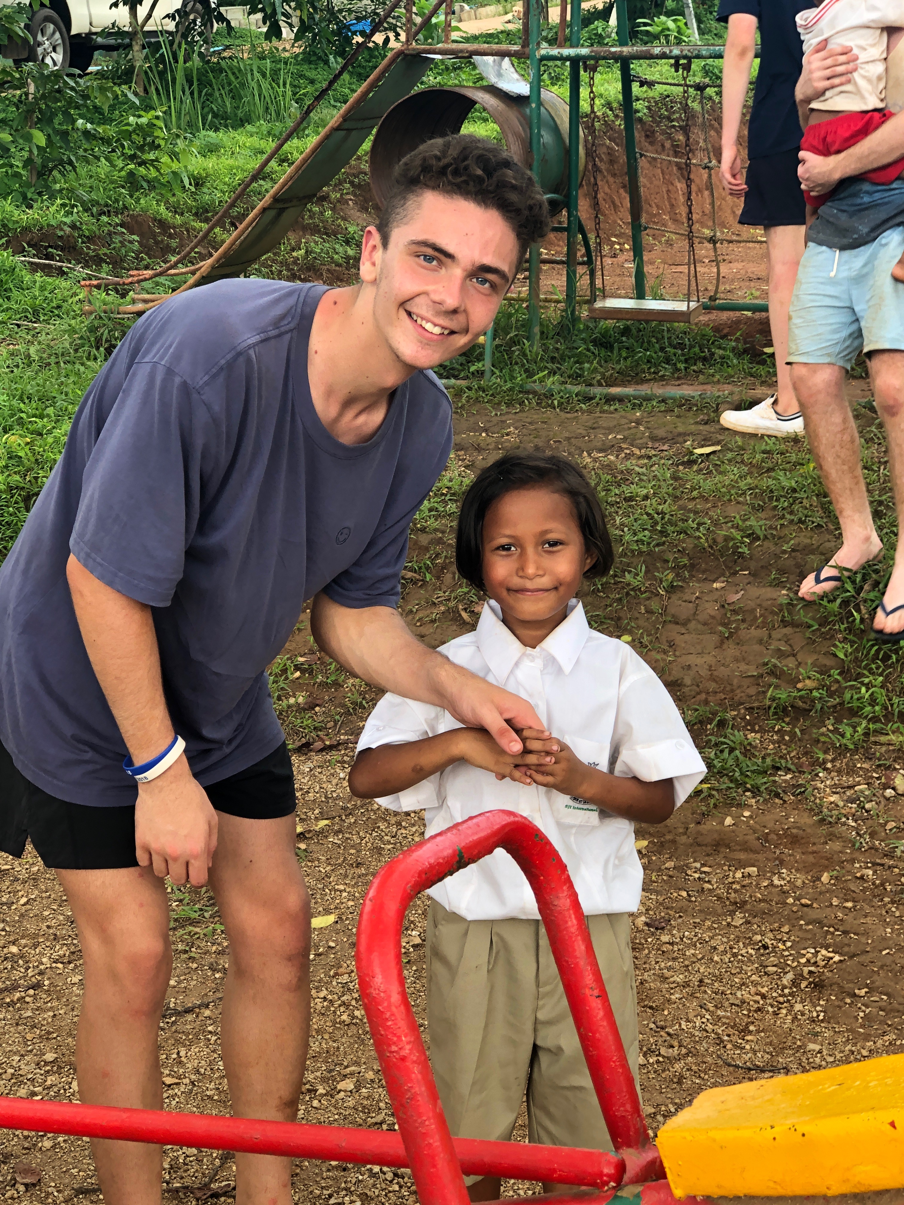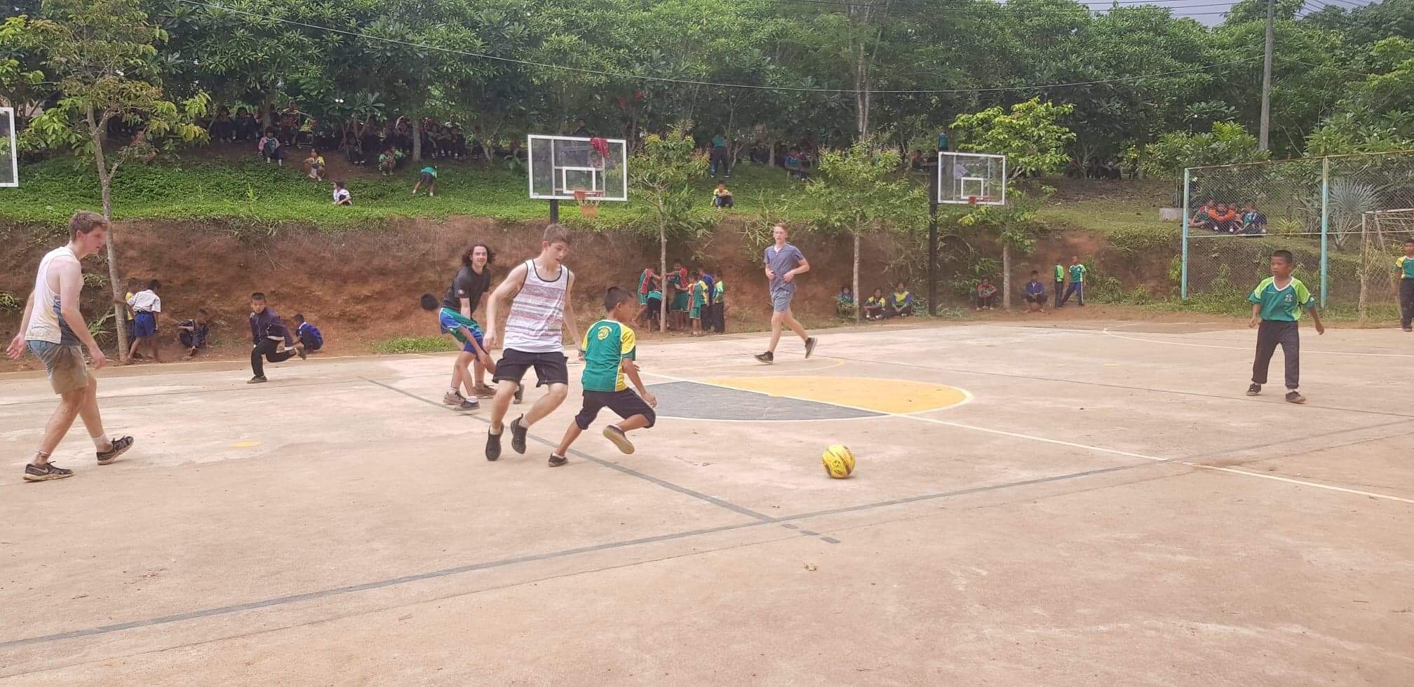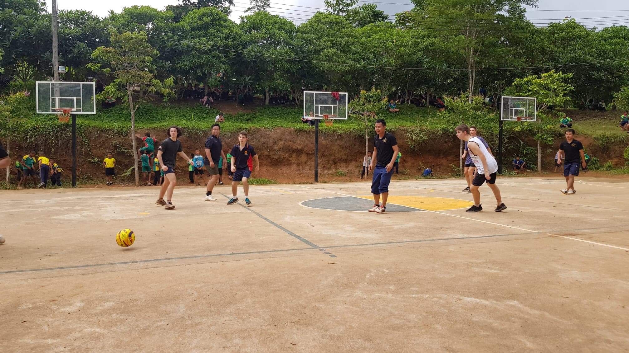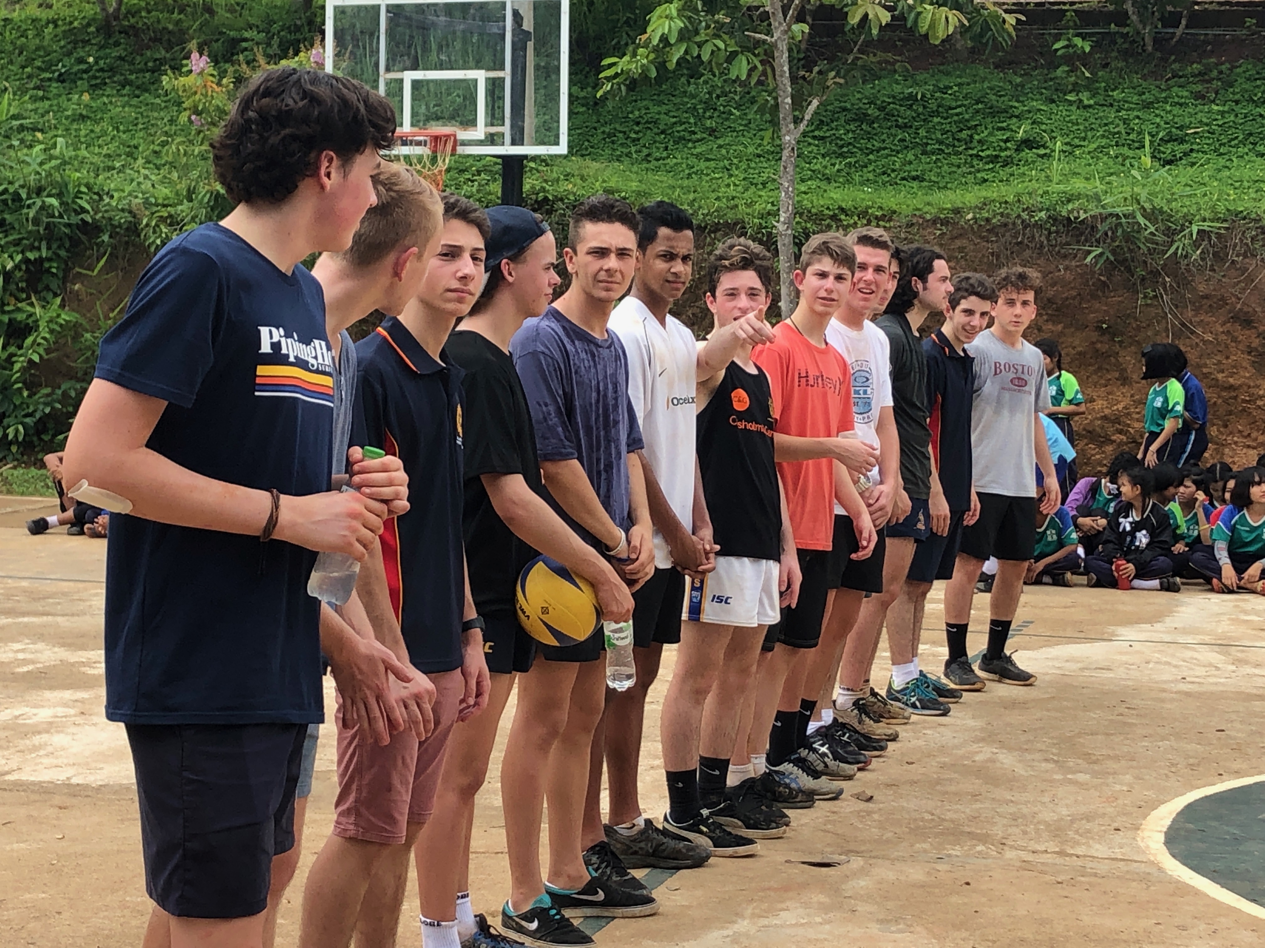 Lunch was celebrated with all the students, and as per usual we prayed and said our thanks to God prior to eating. We then proceeded to munch down some rice, pad thai, and some sausages that happened to be made of glue. After lunch, we joined the students in the yard for their break, and this consisted of hand clapping games, piggy back rides, laughter and infectious smiles on the faces of both the kids and us.
