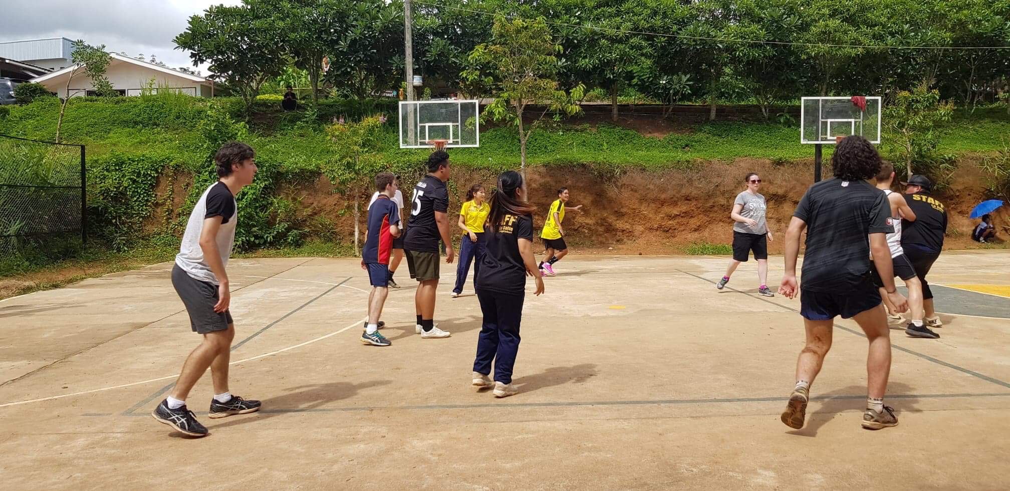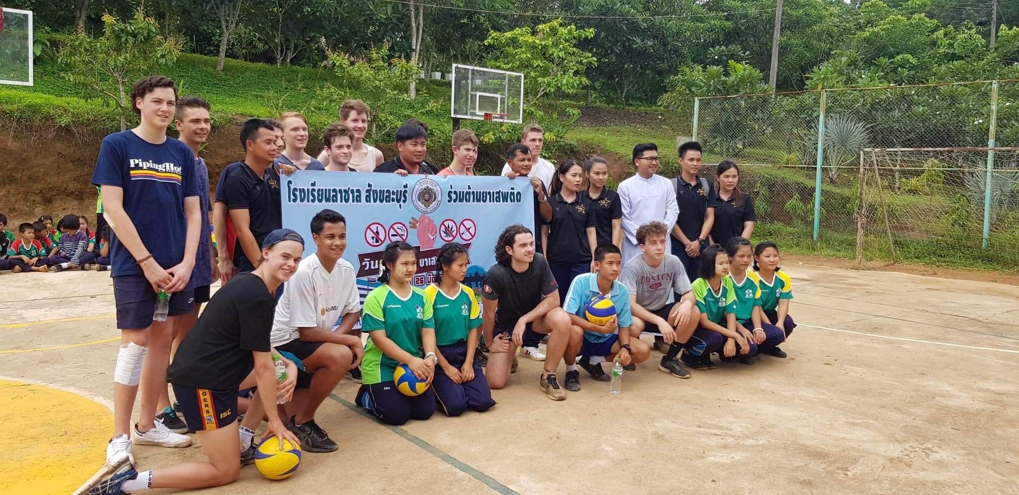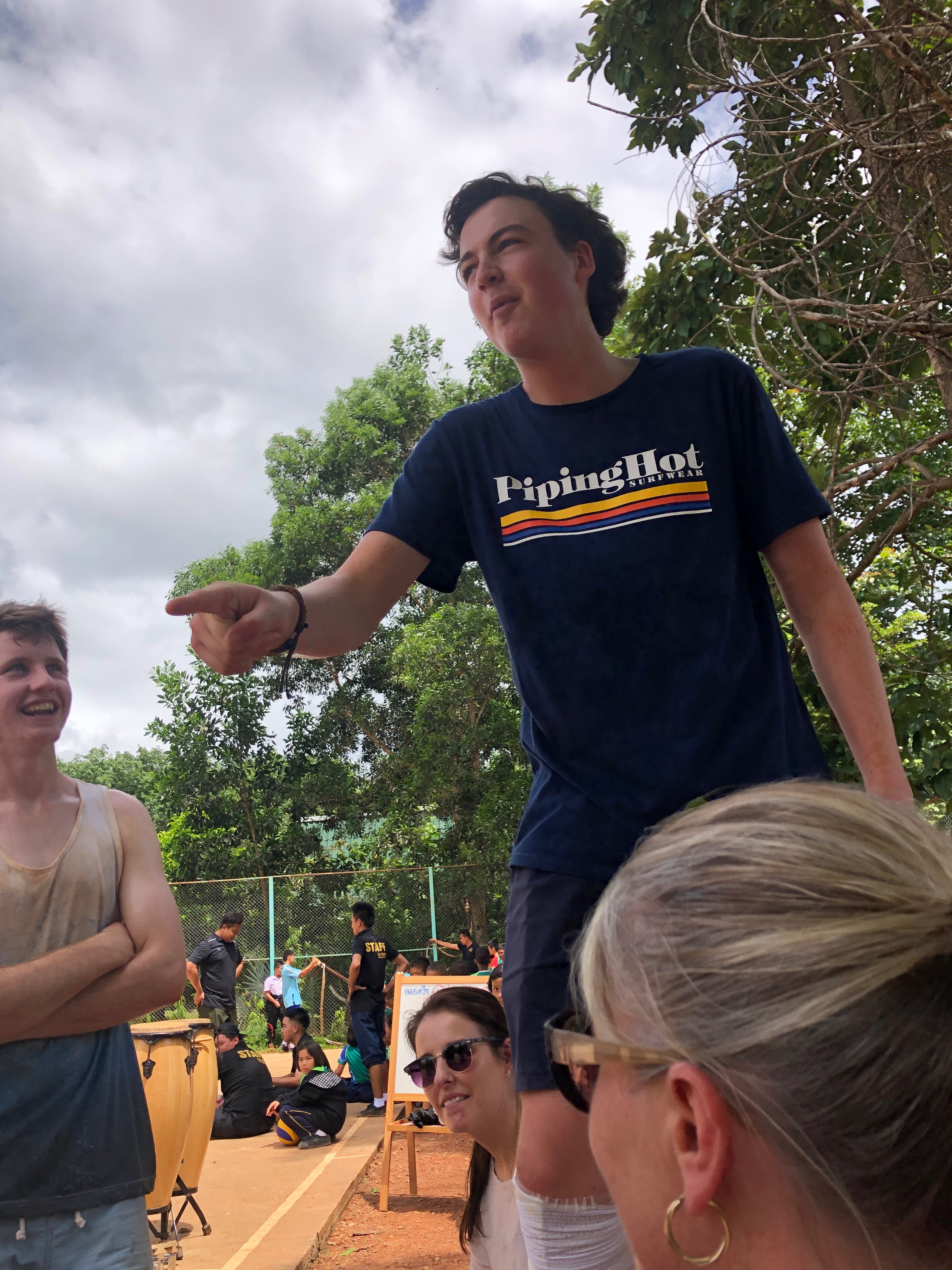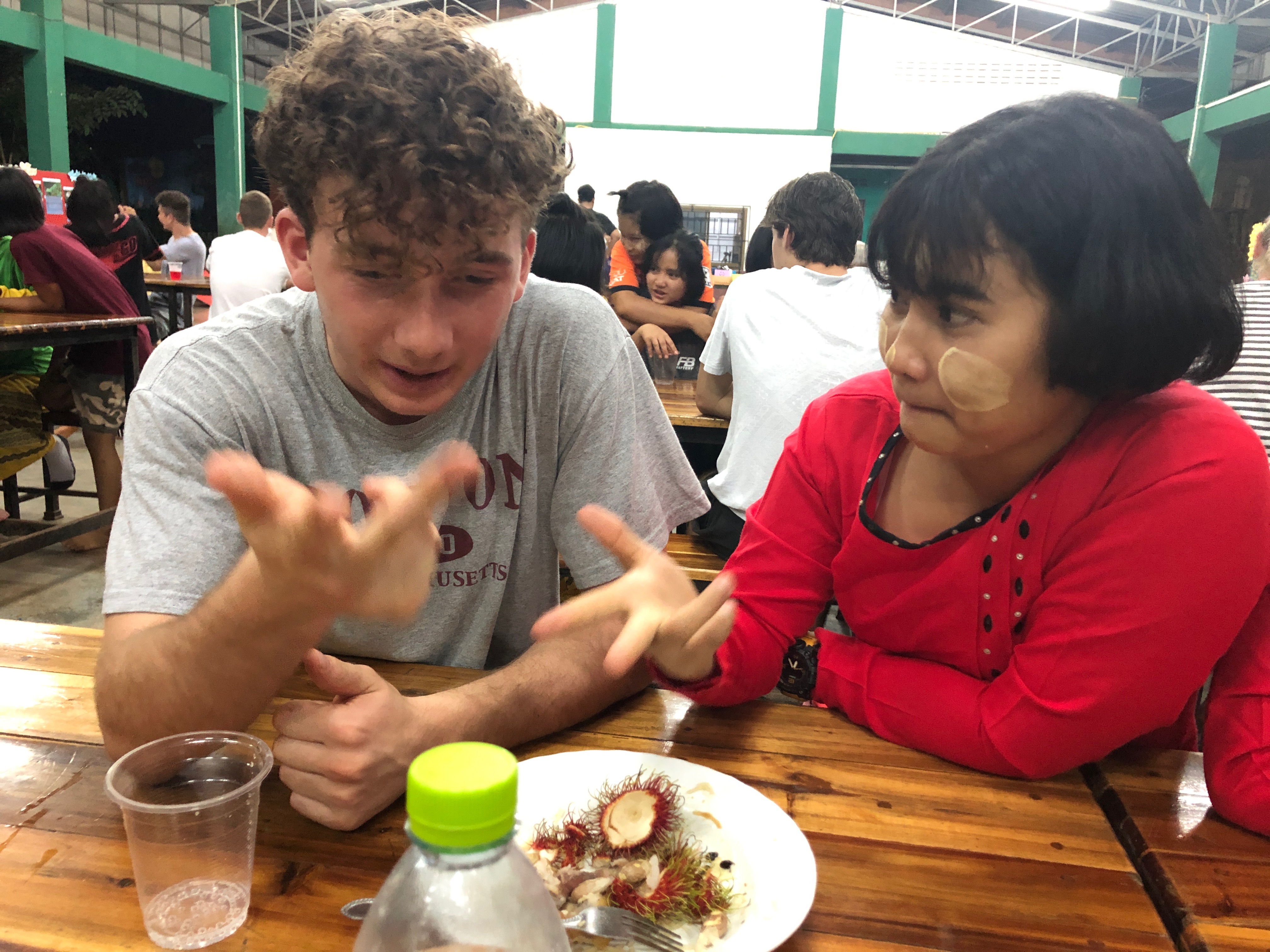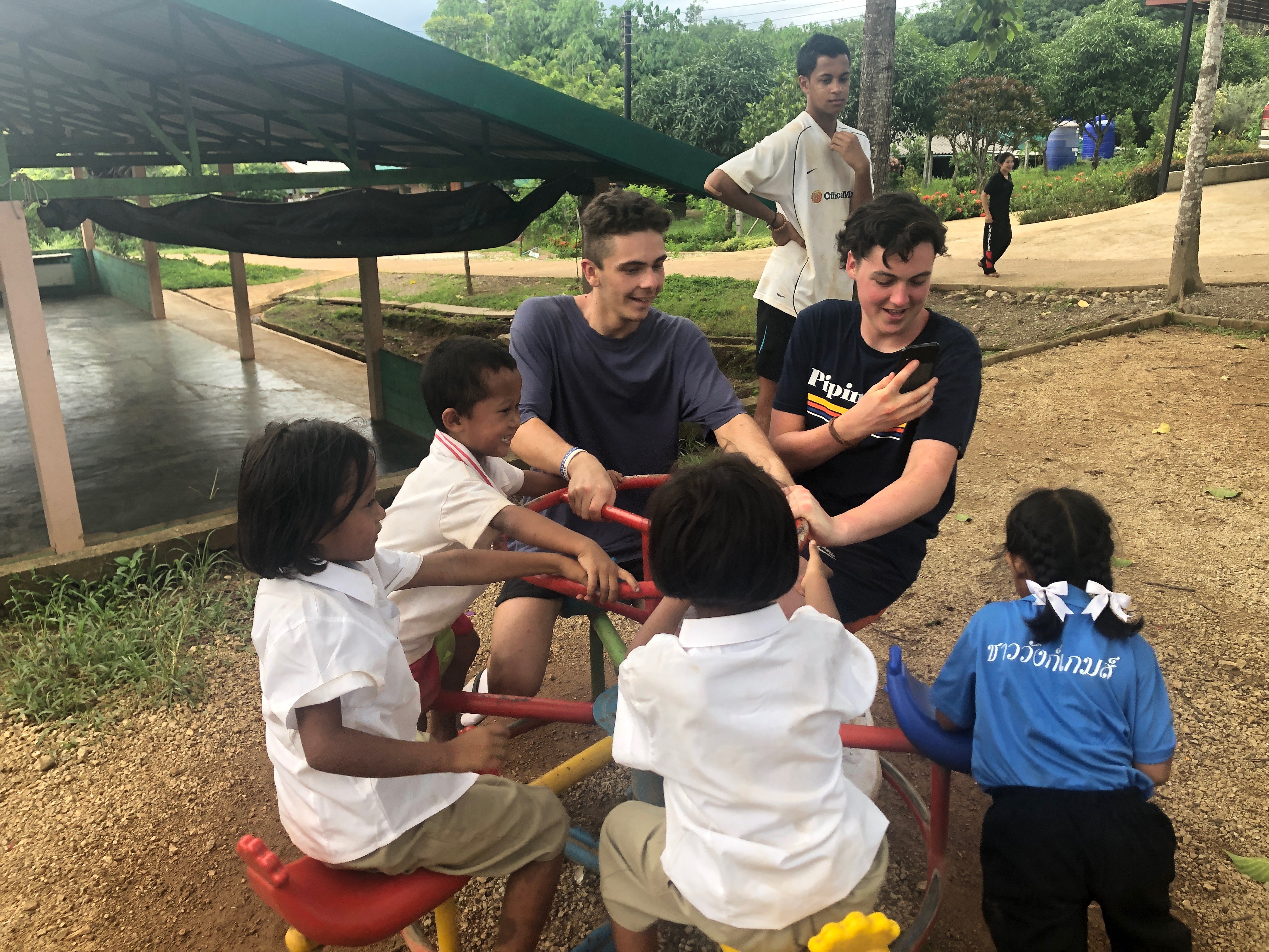 Lunch was celebrated with all the students, and as per usual we prayed and said our thanks to God prior to eating. We then proceeded to munch down some rice, pad thai, and some sausages that happened to be made of glue. After lunch, we joined the students in the yard for their break, and this consisted of hand clapping games, piggy back rides, laughter and infectious smiles on the faces of both the kids and us.