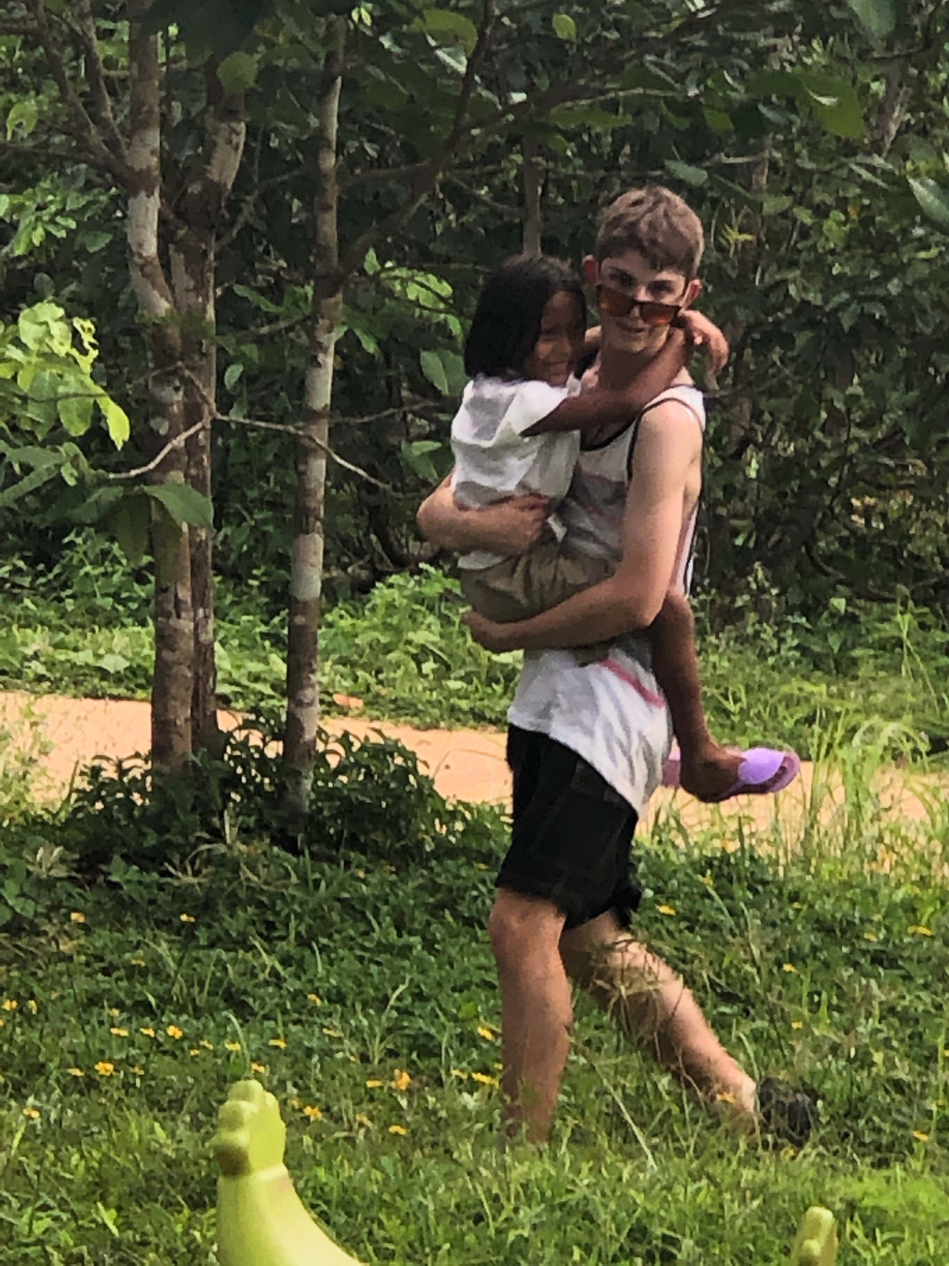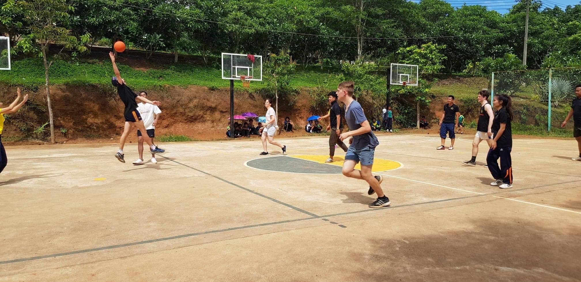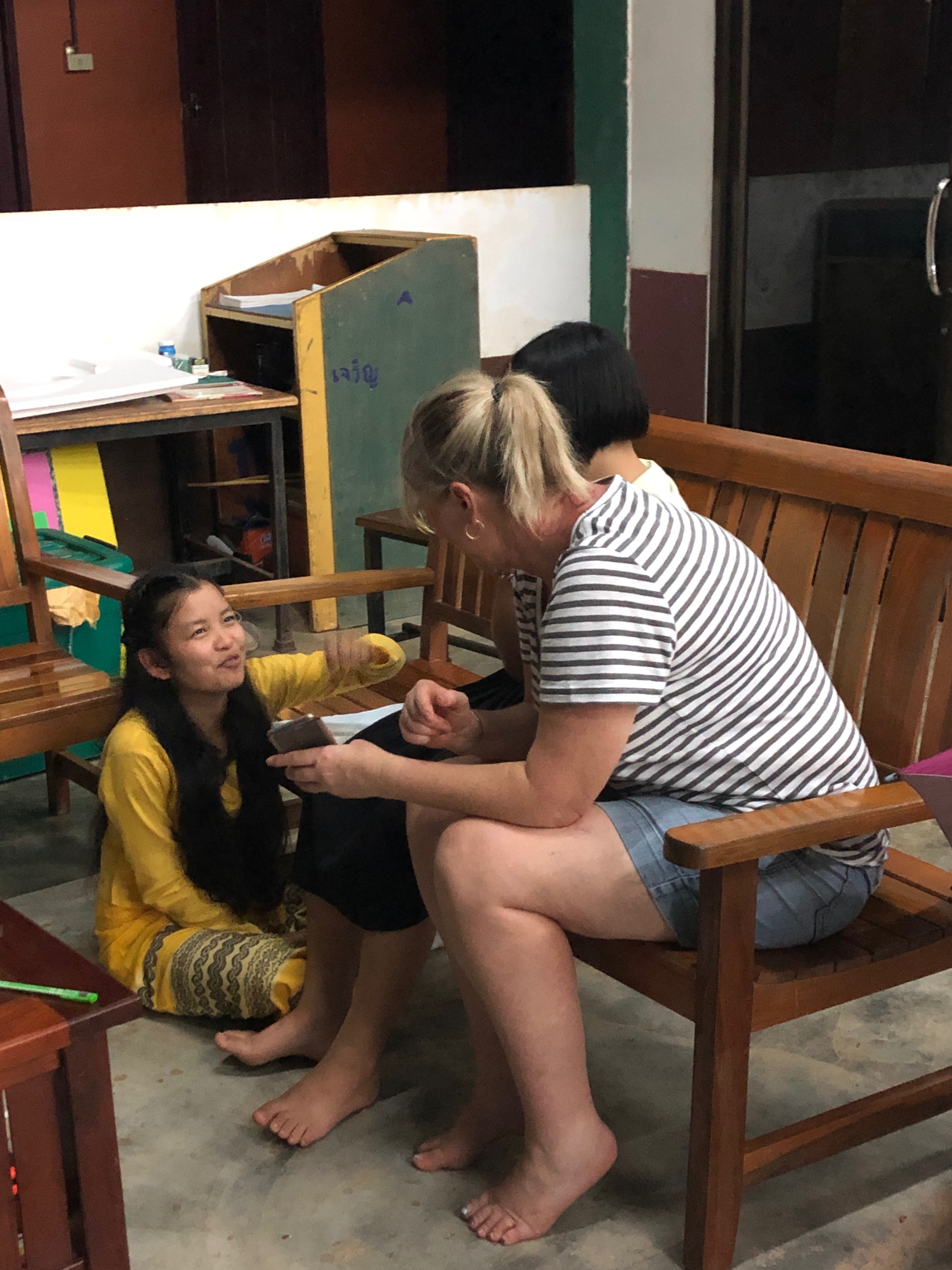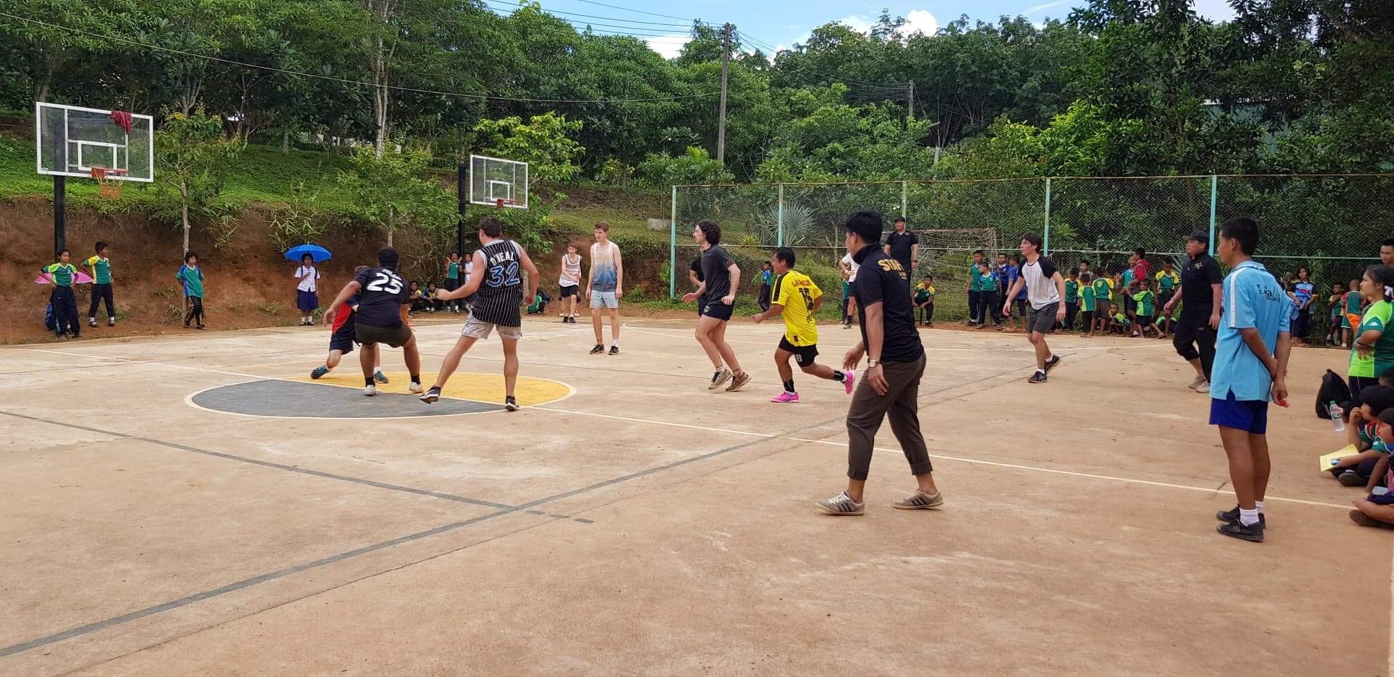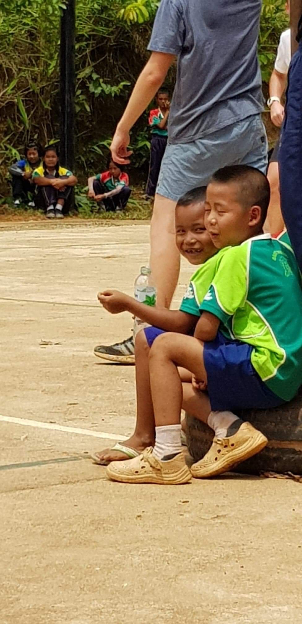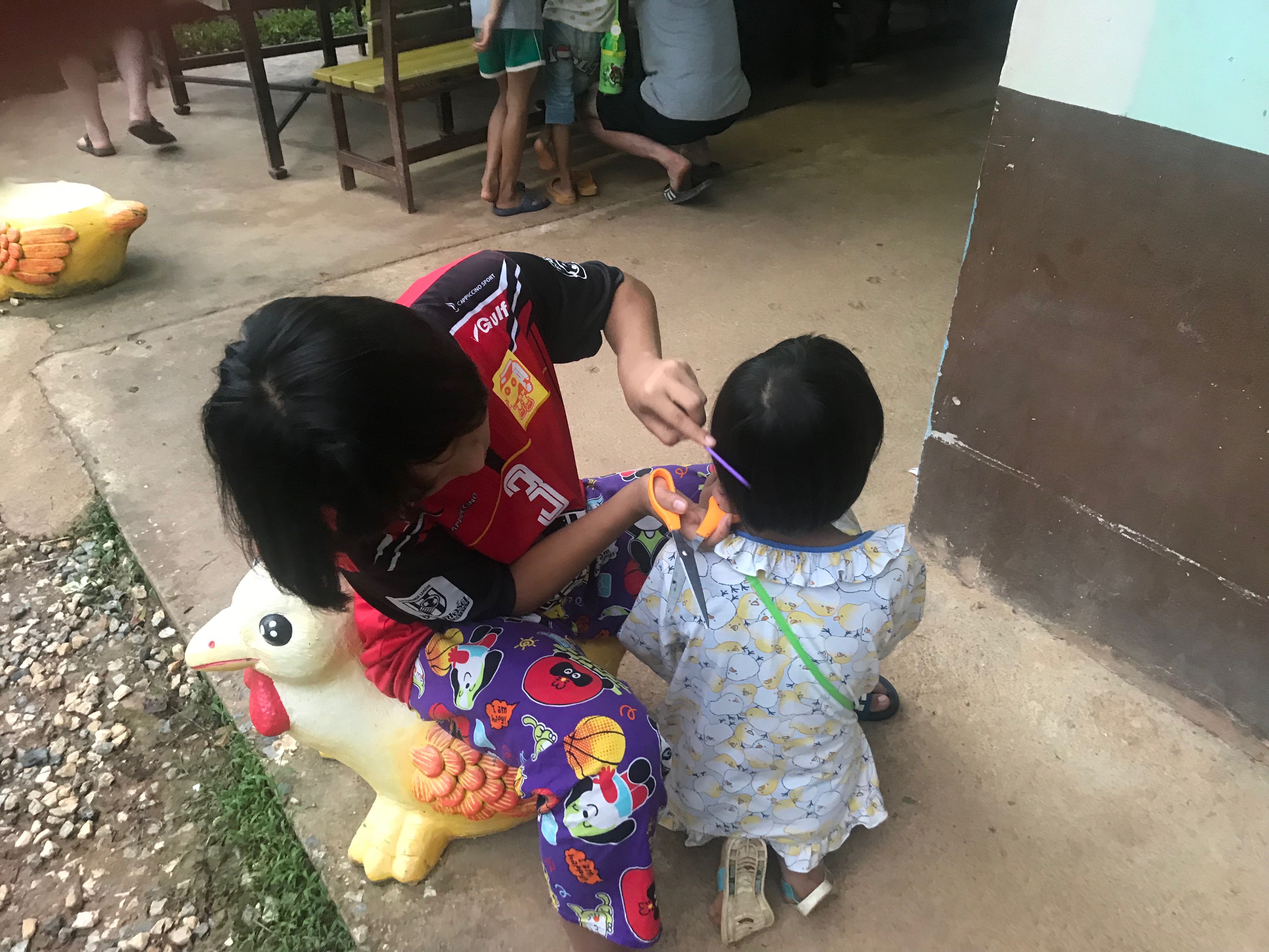 Lunch was celebrated with all the students, and as per usual we prayed and said our thanks to God prior to eating. We then proceeded to munch down some rice, pad thai, and some sausages that happened to be made of glue. After lunch, we joined the students in the yard for their break, and this consisted of hand clapping games, piggy back rides, laughter and infectious smiles on the faces of both the kids and us.