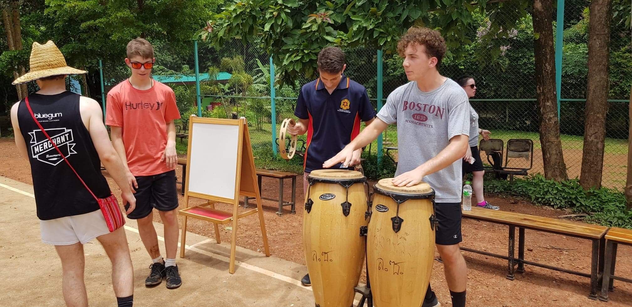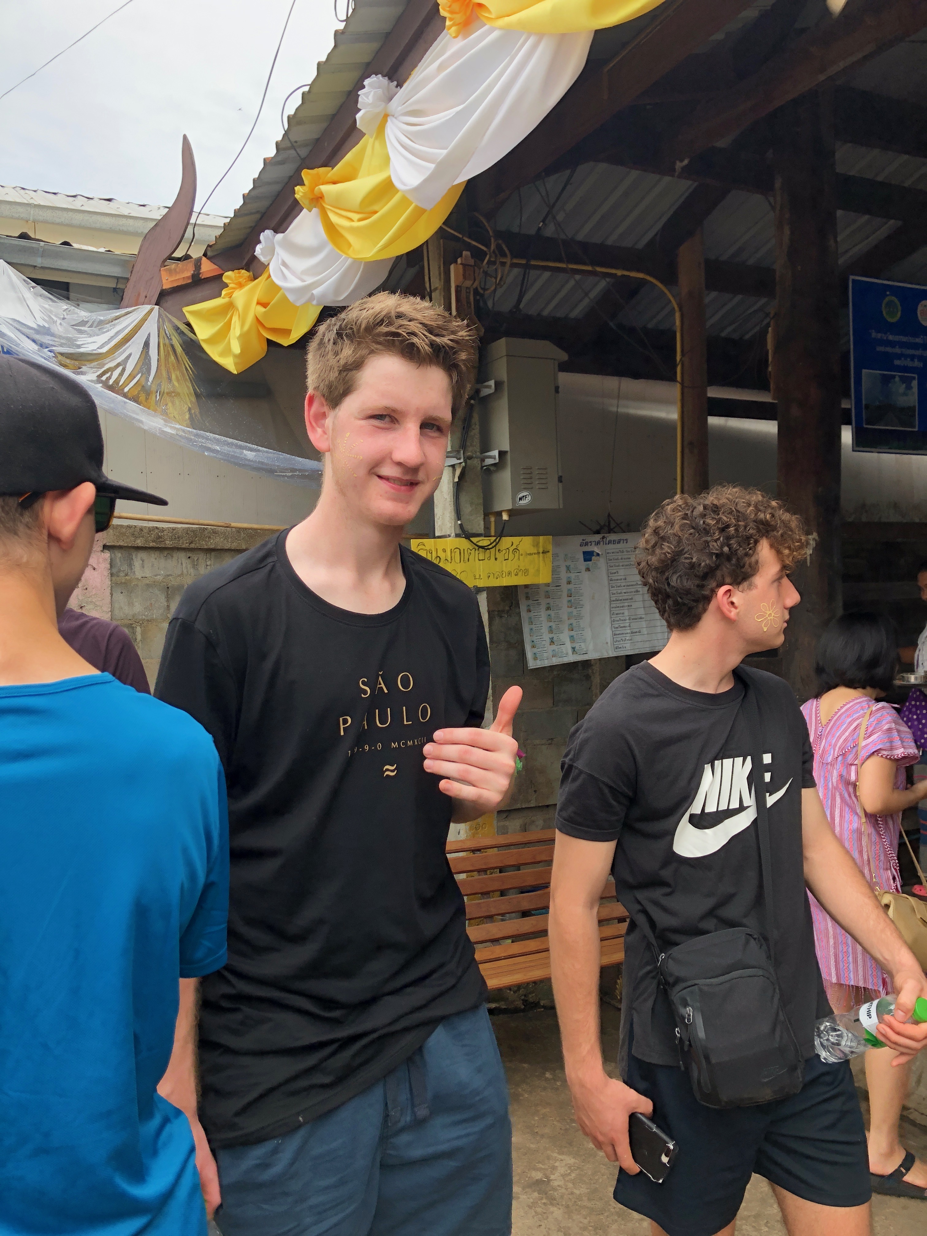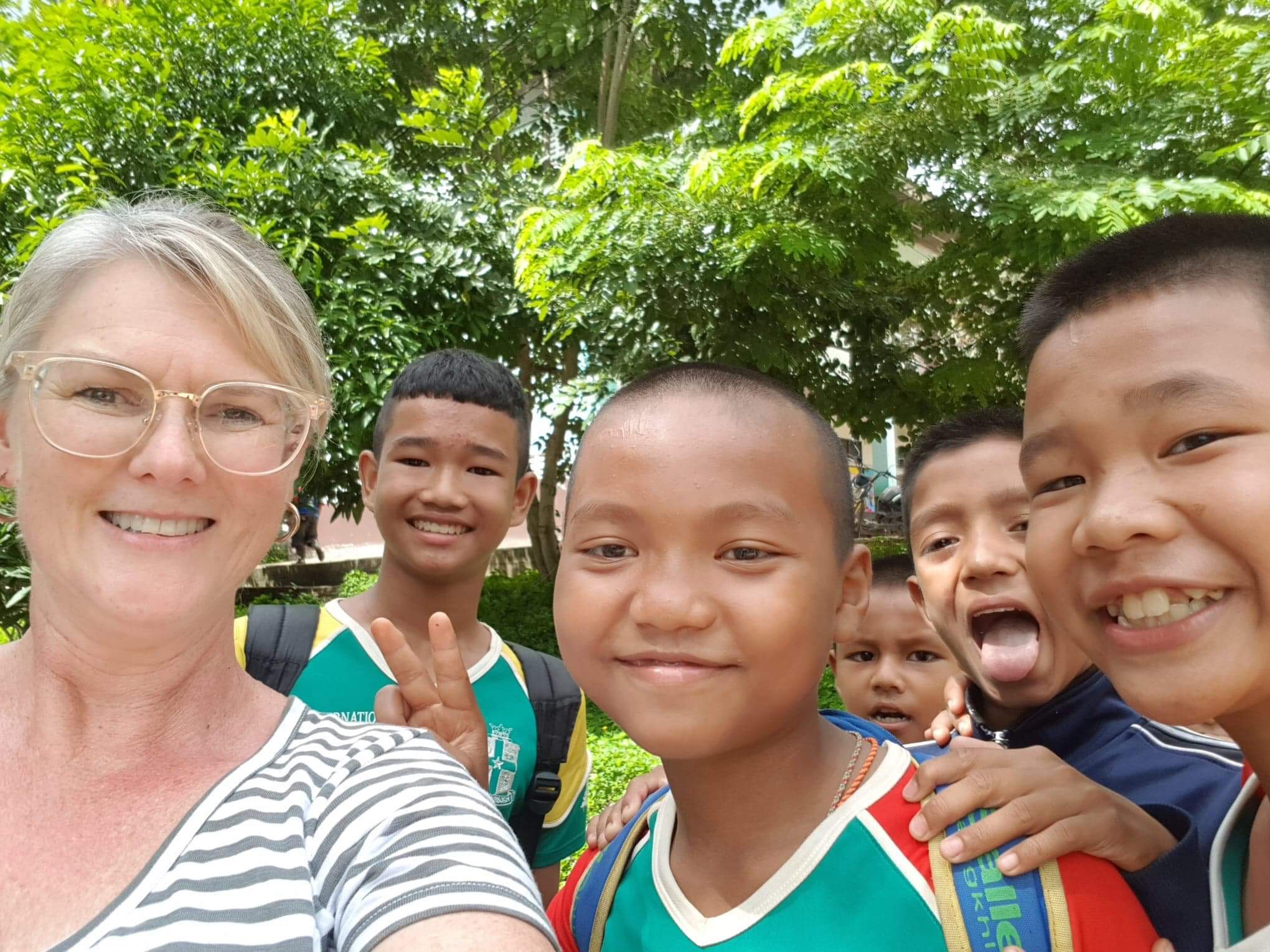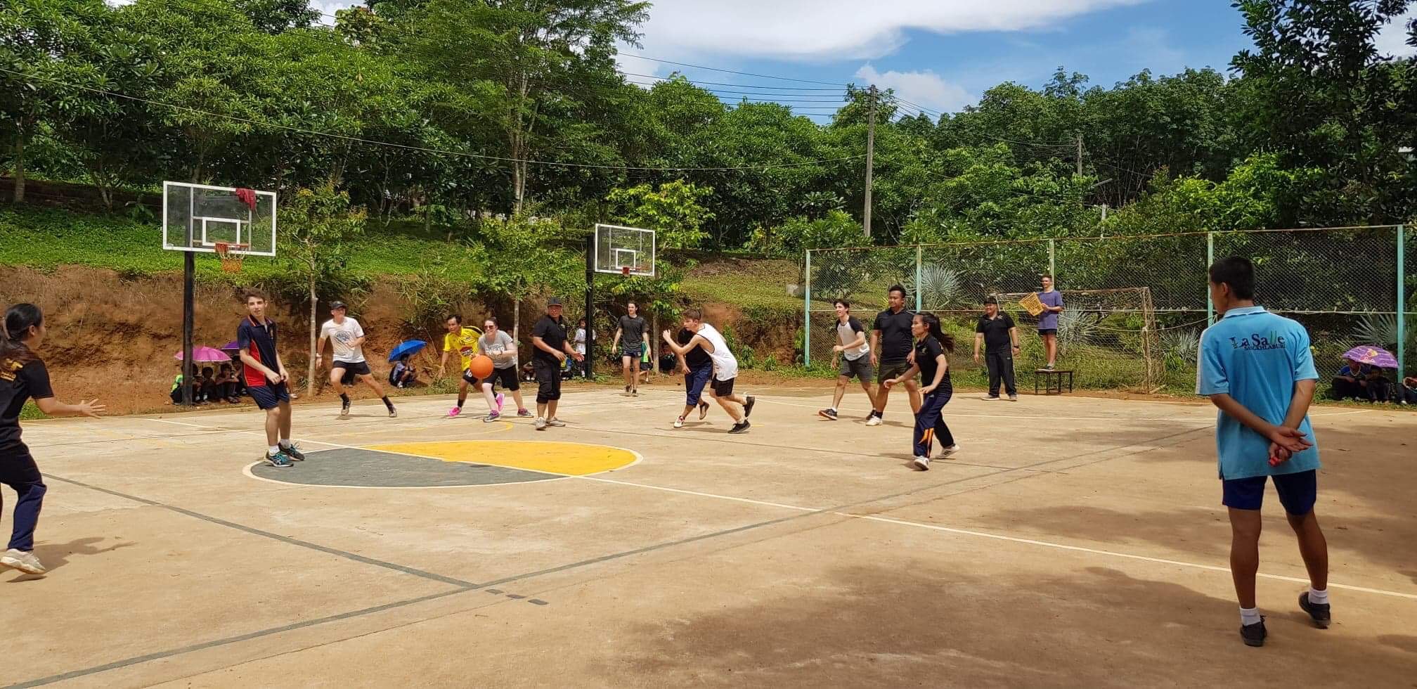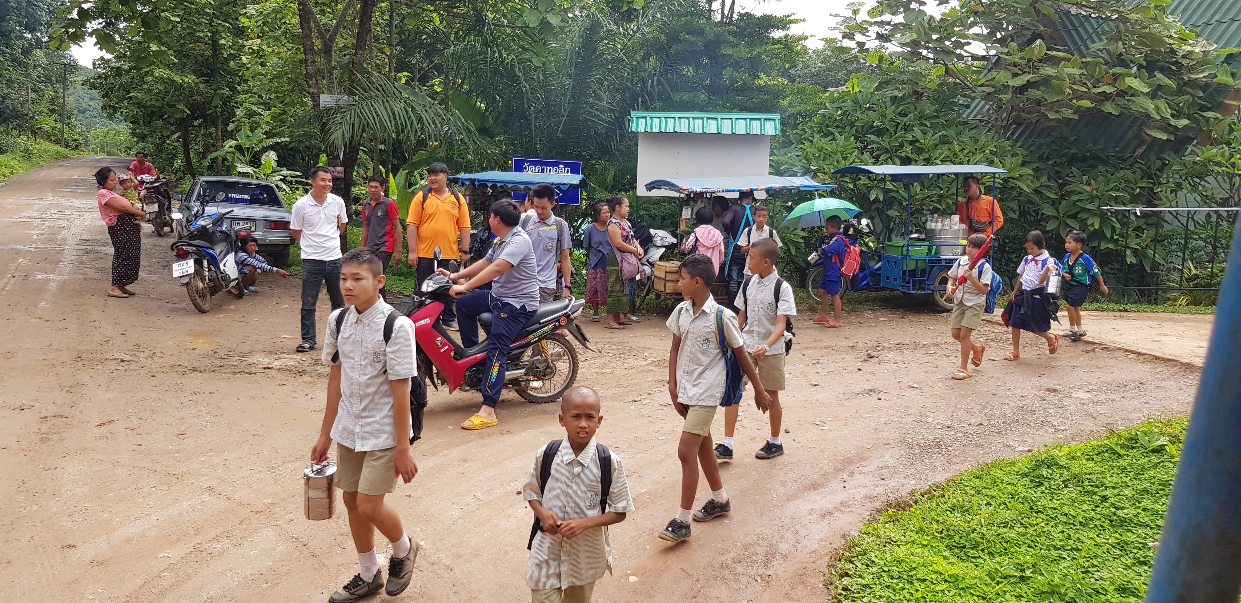 Lunch was celebrated with all the students, and as per usual we prayed and said our thanks to God prior to eating. We then proceeded to munch down some rice, pad thai, and some sausages that happened to be made of glue. After lunch, we joined the students in the yard for their break, and this consisted of hand clapping games, piggy back rides, laughter and infectious smiles on the faces of both the kids and us.