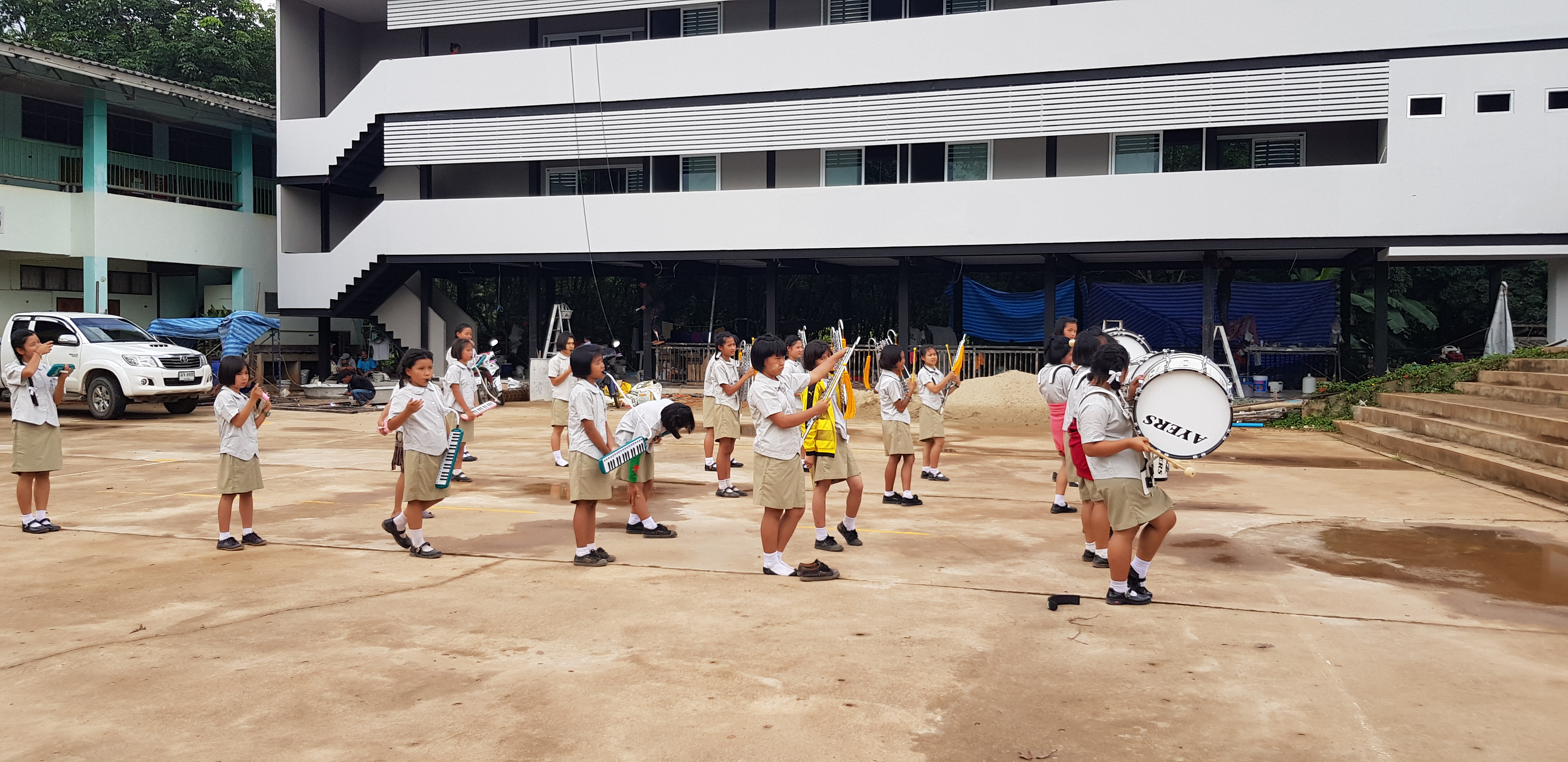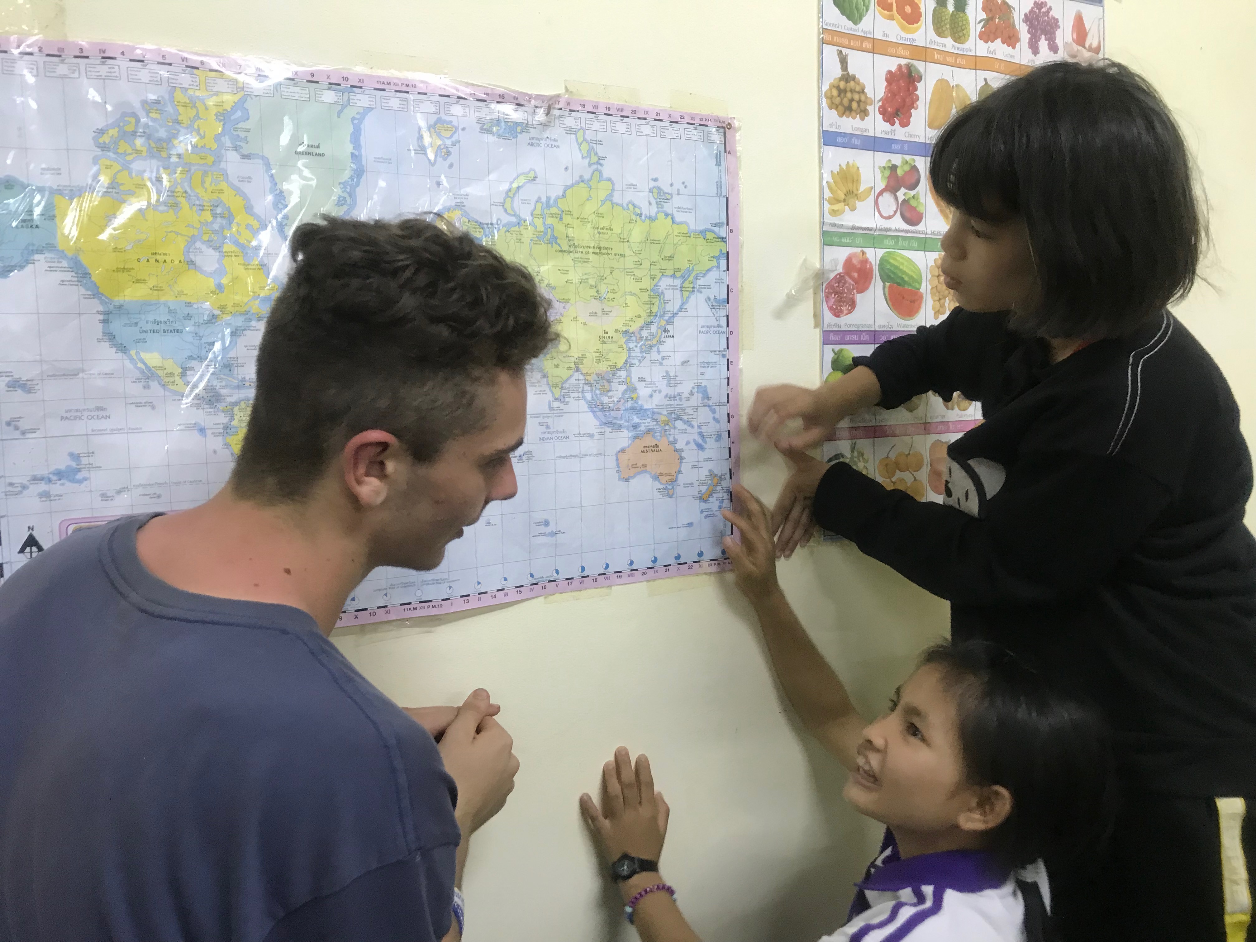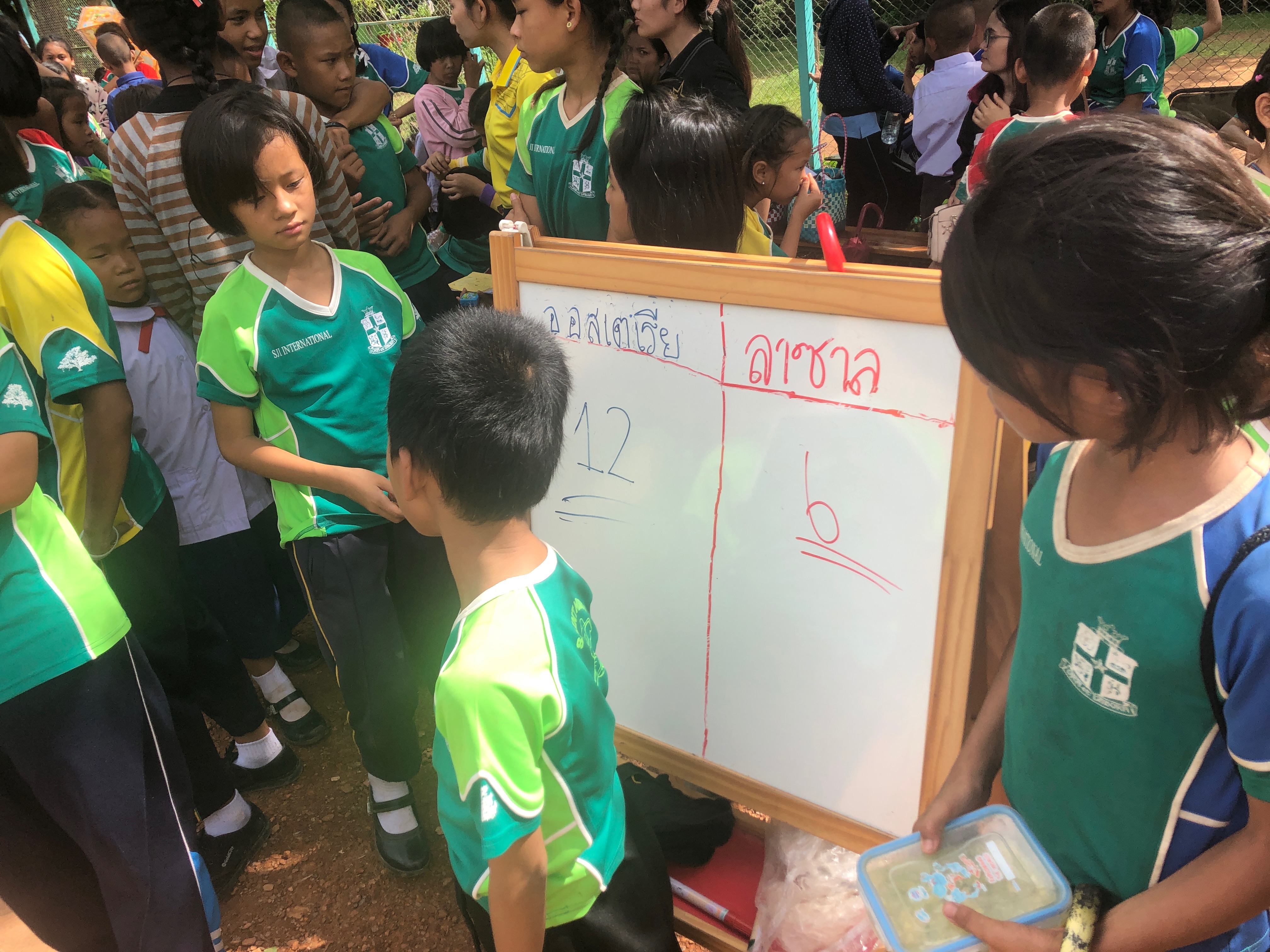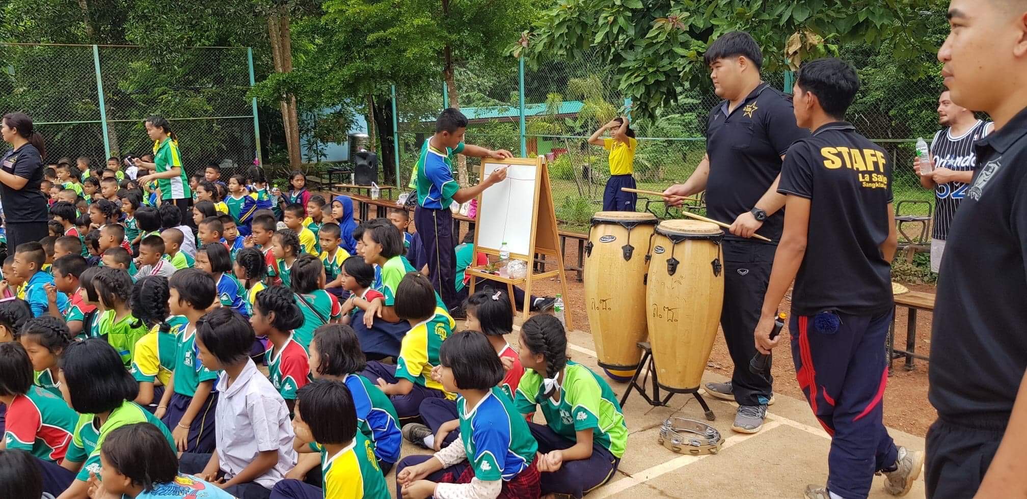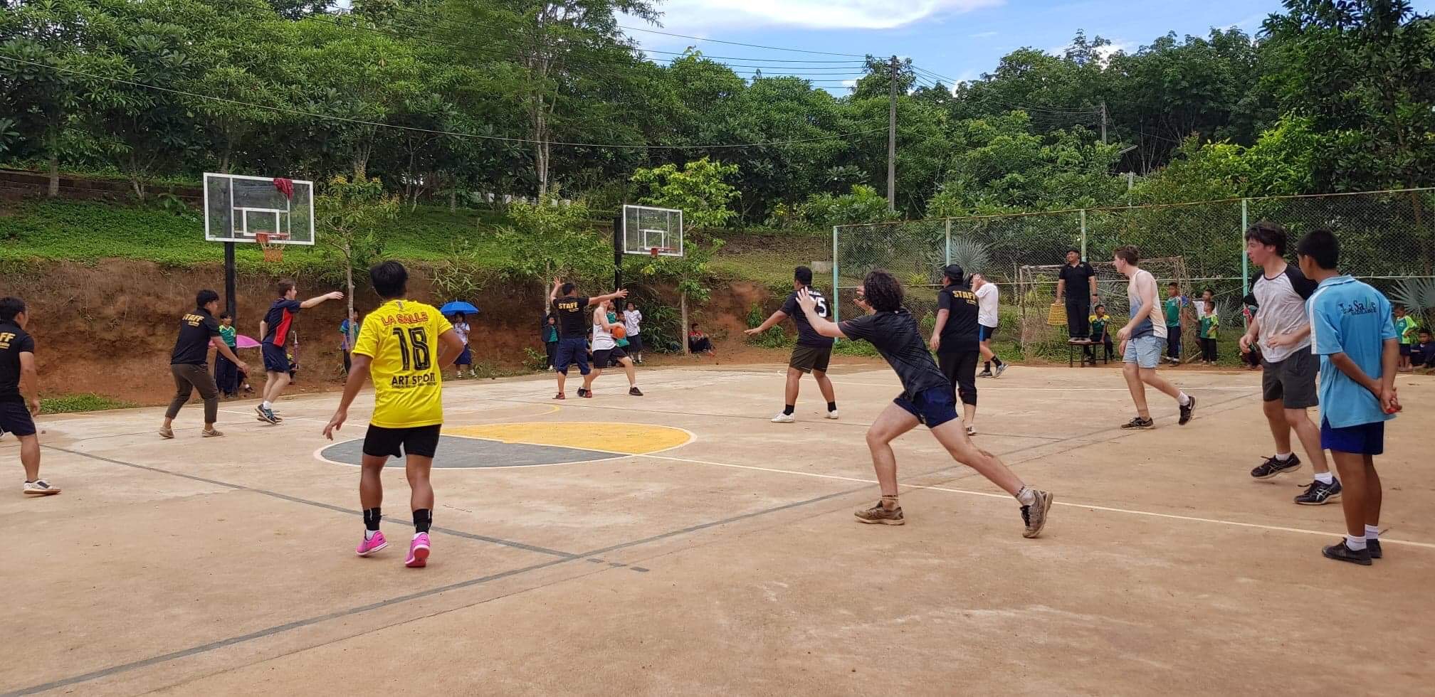 Lunch was celebrated with all the students, and as per usual we prayed and said our thanks to God prior to eating. We then proceeded to munch down some rice, pad thai, and some sausages that happened to be made of glue. After lunch, we joined the students in the yard for their break, and this consisted of hand clapping games, piggy back rides, laughter and infectious smiles on the faces of both the kids and us.