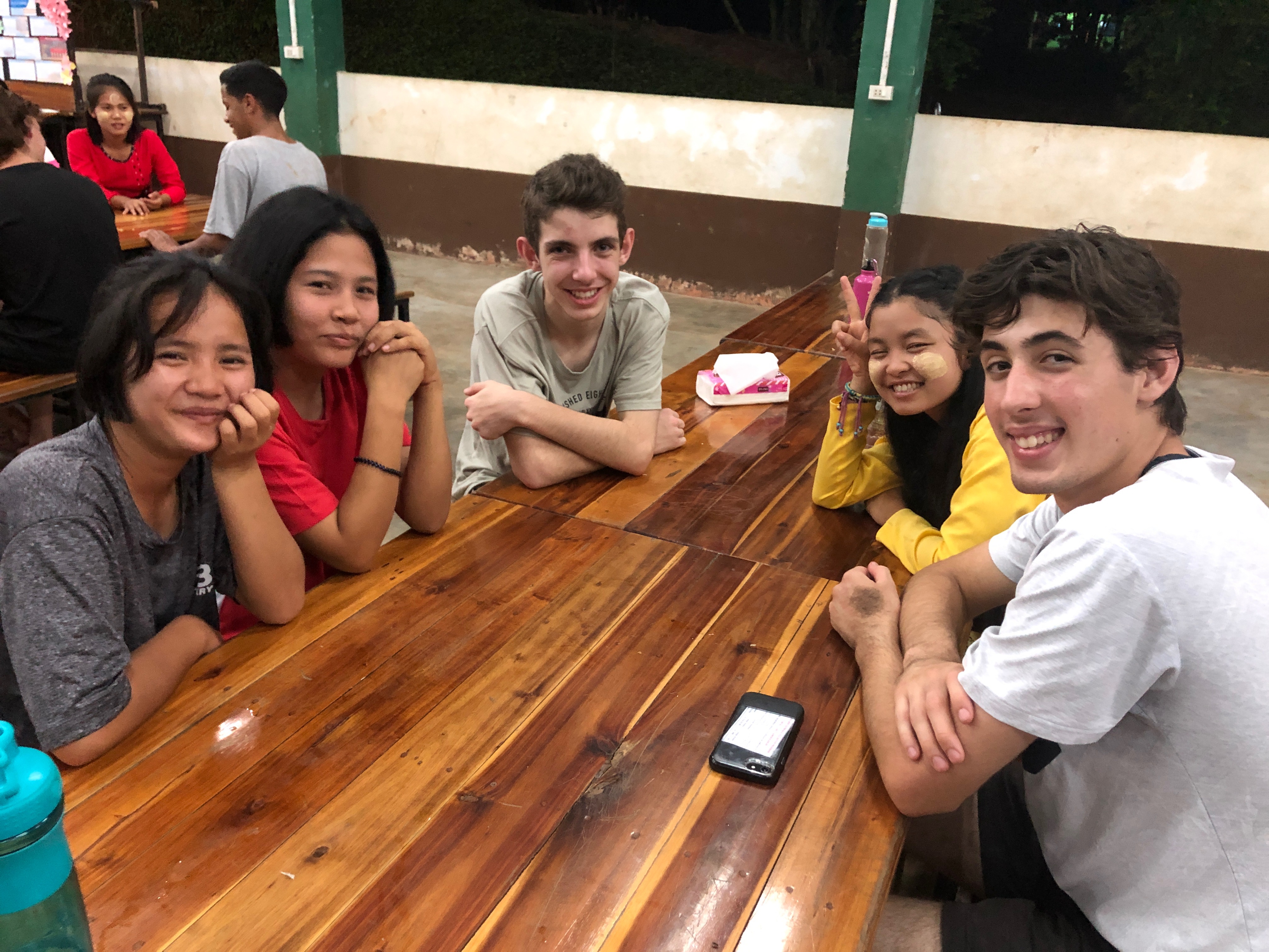 On Thursday, Day Five, Justin, Matt and Elijah, along with Sherine, got an early start to the day doing the rounds on the school bus. They drove to the Three Pagodas border, where historically there has been hostility between the Burmese and Thai, and collected a bus load of Burmese children who strolled across the border with a smile on their faces, just as they do every morning and afternoon. Back at the school, the rest of us enjoyed some toast, churros-looking-things, and potato and onion samosas.